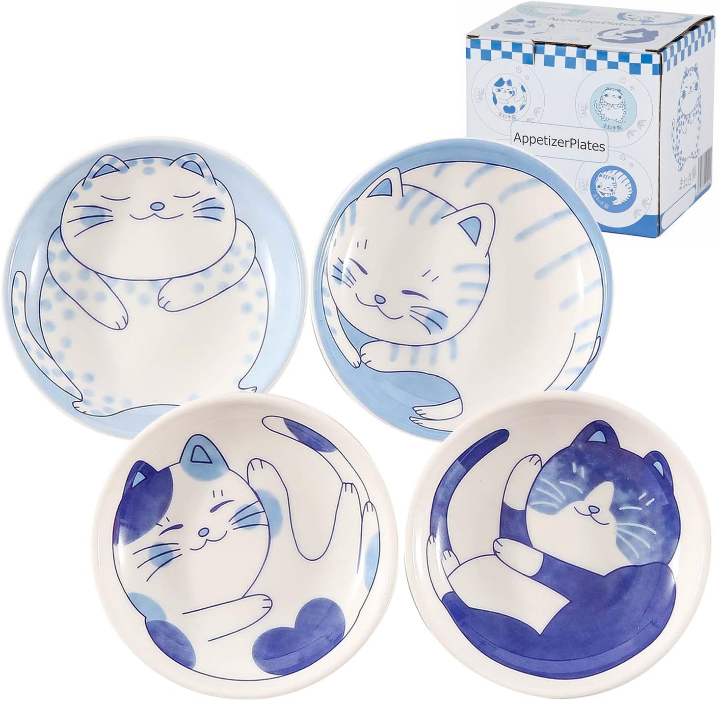 MINO WARE Japanische Katzen-Teller 4er Set - Keramik Untertassen 9,5cm Für Sushi & Dessert