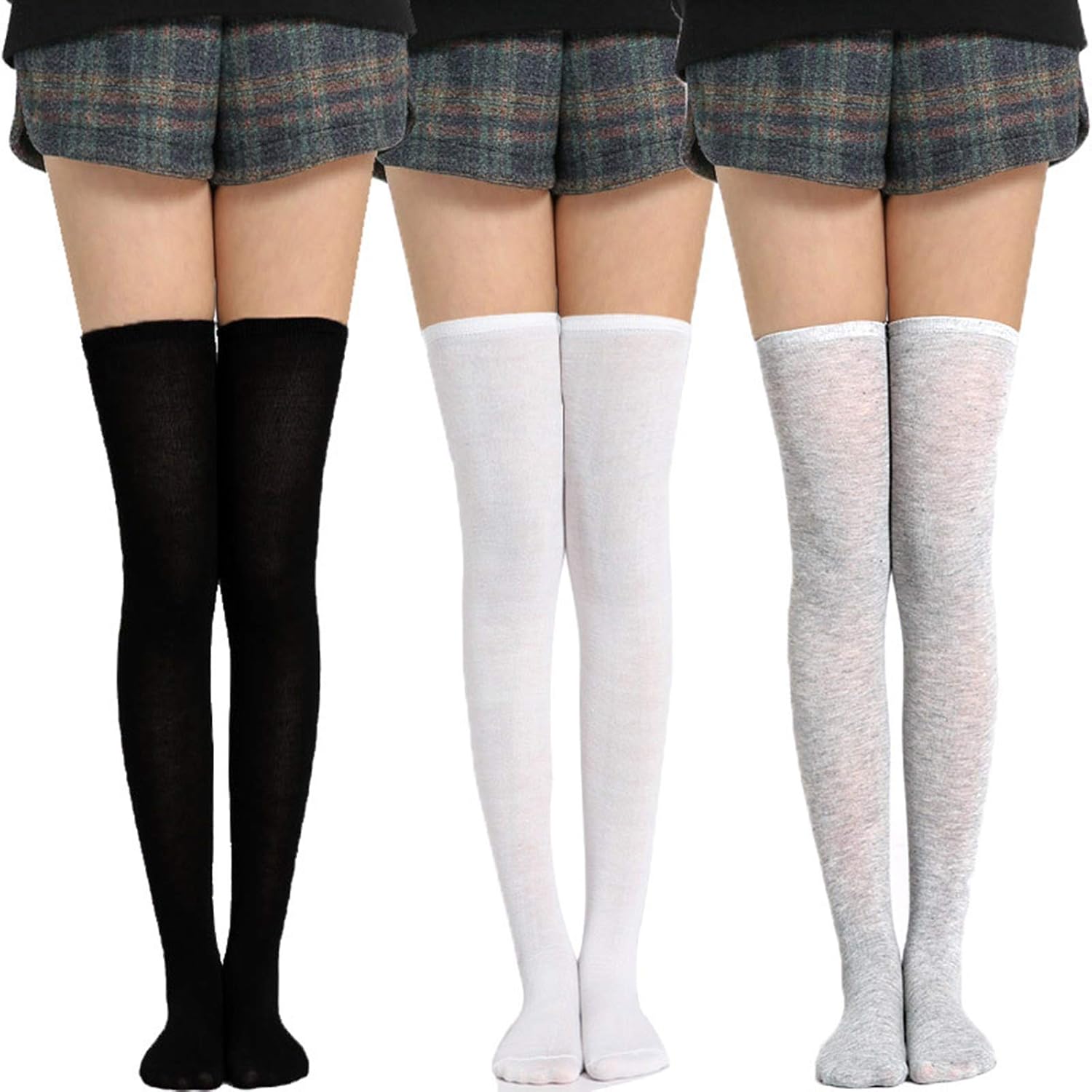 Diese Chevnzev Oberschenkel Socken sind total im japanischen Trend! Überknielang mit schlampiger Manschette, die sicher hält. Aus weicher Polyester-Baumwoll-Mischung - dehnbar, warm und super bequem. Perfekt für kühle Tage oder klimatisierte Räume. In verschiedenen Farben erhältlich: Schwarz, Weiß, Milchapricot, Grau, Milchweiß, Khaki. Macht jeden Rock oder übergroßen Pulli zum Hingucker. Ein Paar pro Packung - aber du willst sicher mehrfarbig!
