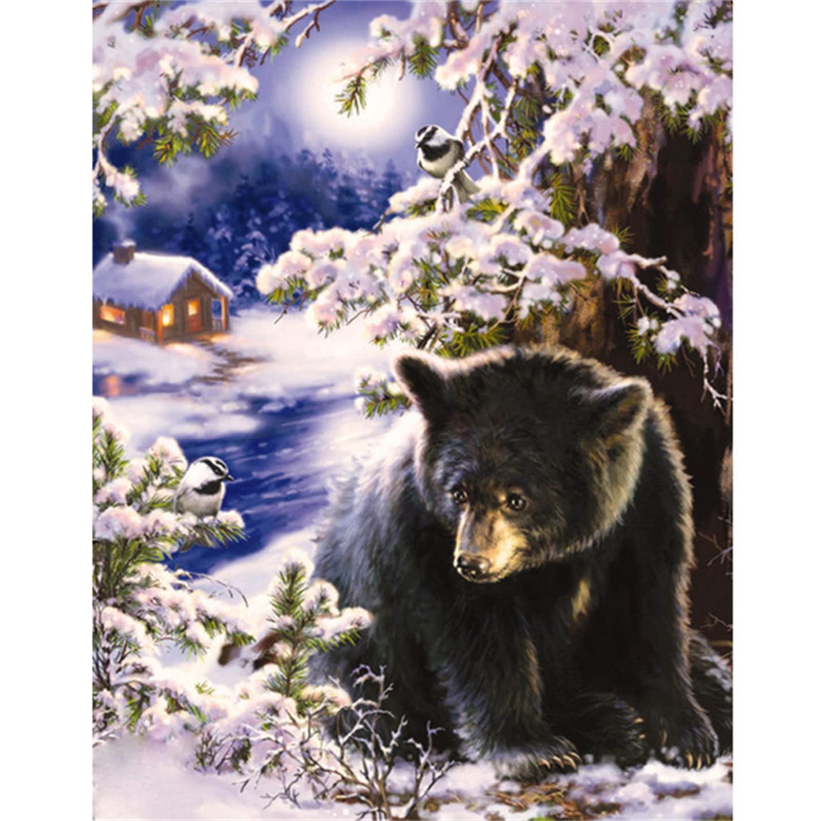 Jawecci Diamond Painting Bär Wald Motiv - 5D Diamantmalerei 30x40cm Für Erwachsene