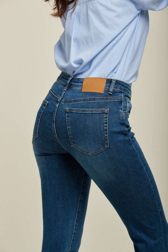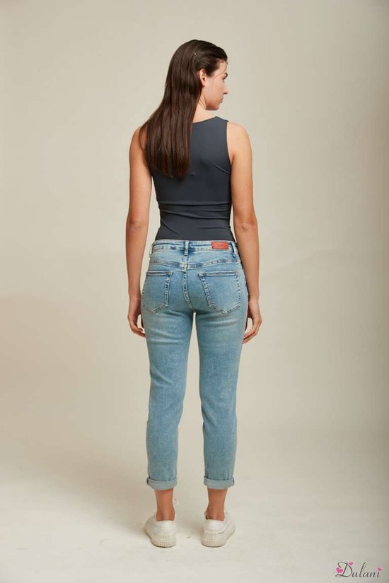 Toxik3 Damen Boyfriend Jeans - High Waist Mid Blue Bequeme Jeans