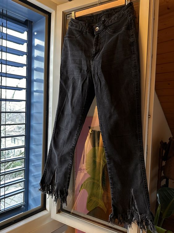 Diese Jeans ist ein echter Hingucker! High Waist Schnitt - betont deine Taille perfekt. Weit geschnitten - super bequem und lässig. Die ausgefransten Hosenbeine geben dem klassischen Denim einen modernen Twist. Dehnbarer Stoff - bewege dich frei ohne Einschränkungen. Perfekt für Office, Freizeit oder Abend mit Freunden. Kombinierbar mit Bluse und Blazer oder casual mit T-Shirt. Hochwertige Verarbeitung - flache Nähte, stabiler Reißverschluss. Ein Basic, das in jeden Kleiderschrank gehört. Fühl dich wohl und stylisch - jeden Tag!