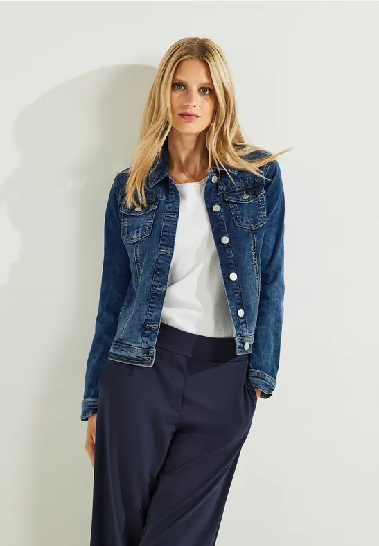 Cecil Damen Jeansjacke - Rinsed Denim Mit Brusttaschen