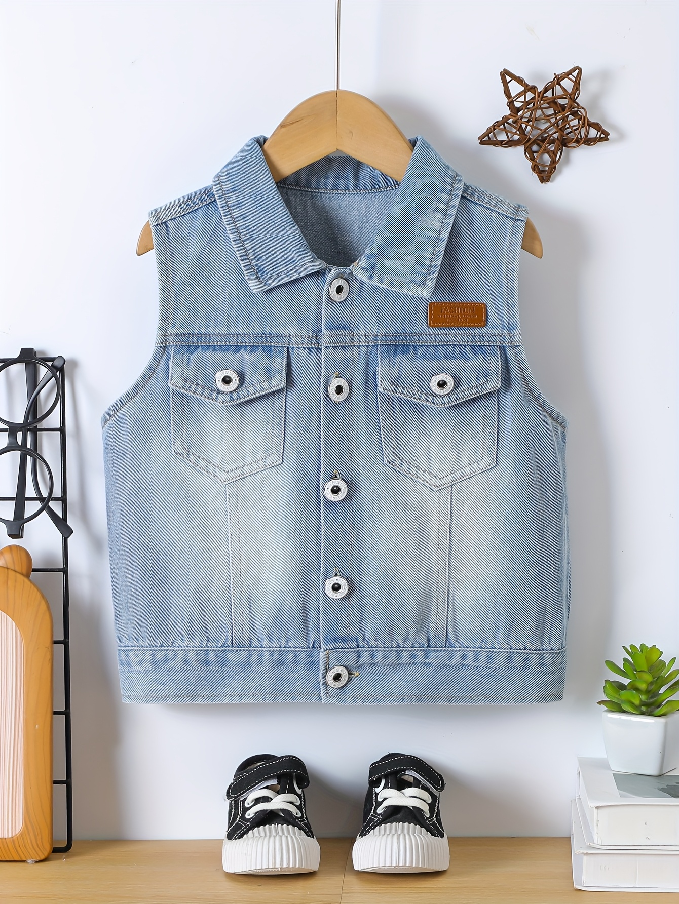 Amur Leopard Jeansweste Für Mädchen - Ärmellose Denim Weste Für Frühling & Herbst