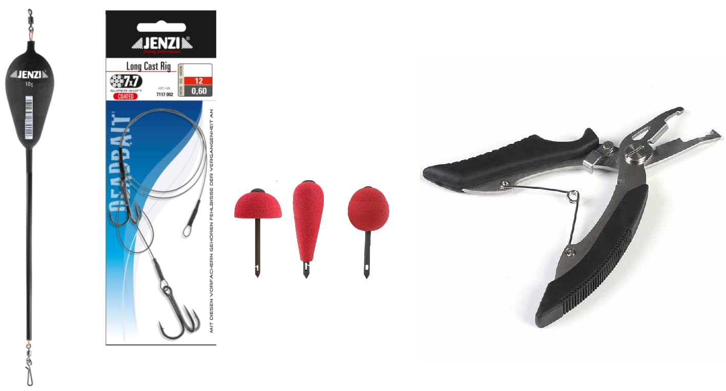 Moin Angler! Wenn du gerne mit toten Köderfischen angeln willst, sind diese Ledger Booms genau das Richtige für dich. Das Set enthält 2 Stück in schwarz, jeweils 18cm lang, und als Bonus gibt's noch ne gratis Angelschere dazu - ca. 10 Gramm schwer und komplett mit Wirbel und Karabiner. Der Mr. Pike Ledger Boom hat nen genialen Vorteil: Die Schnur schwebt frei über Hindernissen am Gewässerboden. Das bedeutet, wenn ein Raubfisch anbeißt, läuft die Schnur super smooth durch ohne zu rucken. Dein Köderfisch präsentiert sich natürlich und gut sichtbar - genau wie es die Räuber mögen. Ideal für alle, die mit dead bait am Grund angeln wollen. Egal ob Hecht, Zander oder Wels - mit diesen Ledger Booms bist du bestens ausgerüstet. Die Qualität von Jenzi ist bekanntlich top, also kannst du dich auf langlebiges Equipment verlieren. Also, wenn du deine Fangerfolge mit Grundmontagen verbessern willst, schnapp dir dieses Set!