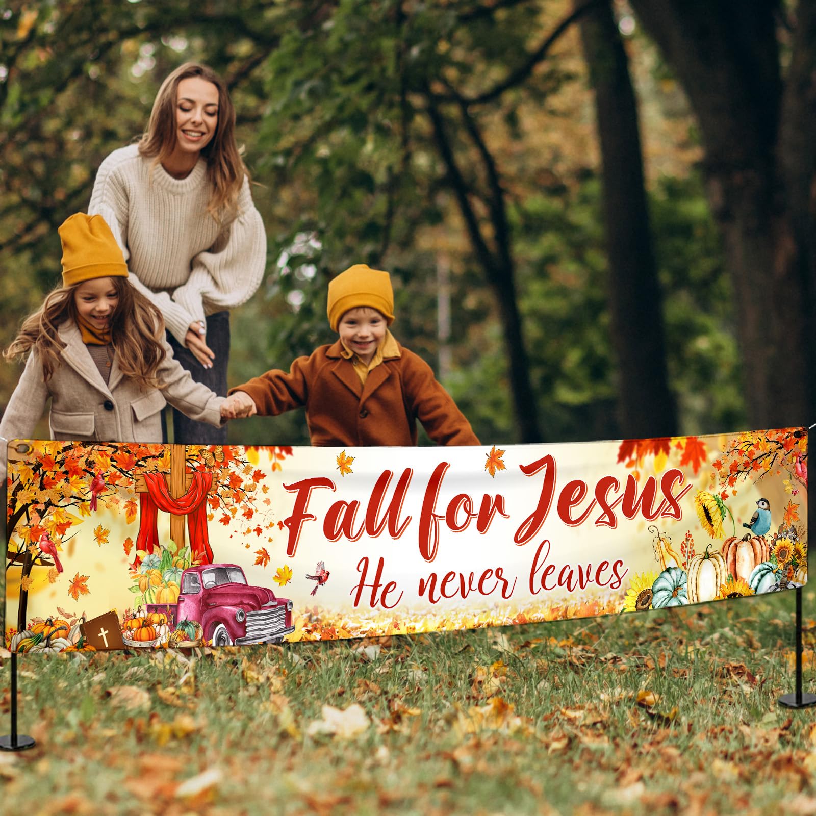 Herbst Türdekoration Mit Jesus Kreuz - 180x89 Cm Dankbarkeits-Banner Mit Kardinal