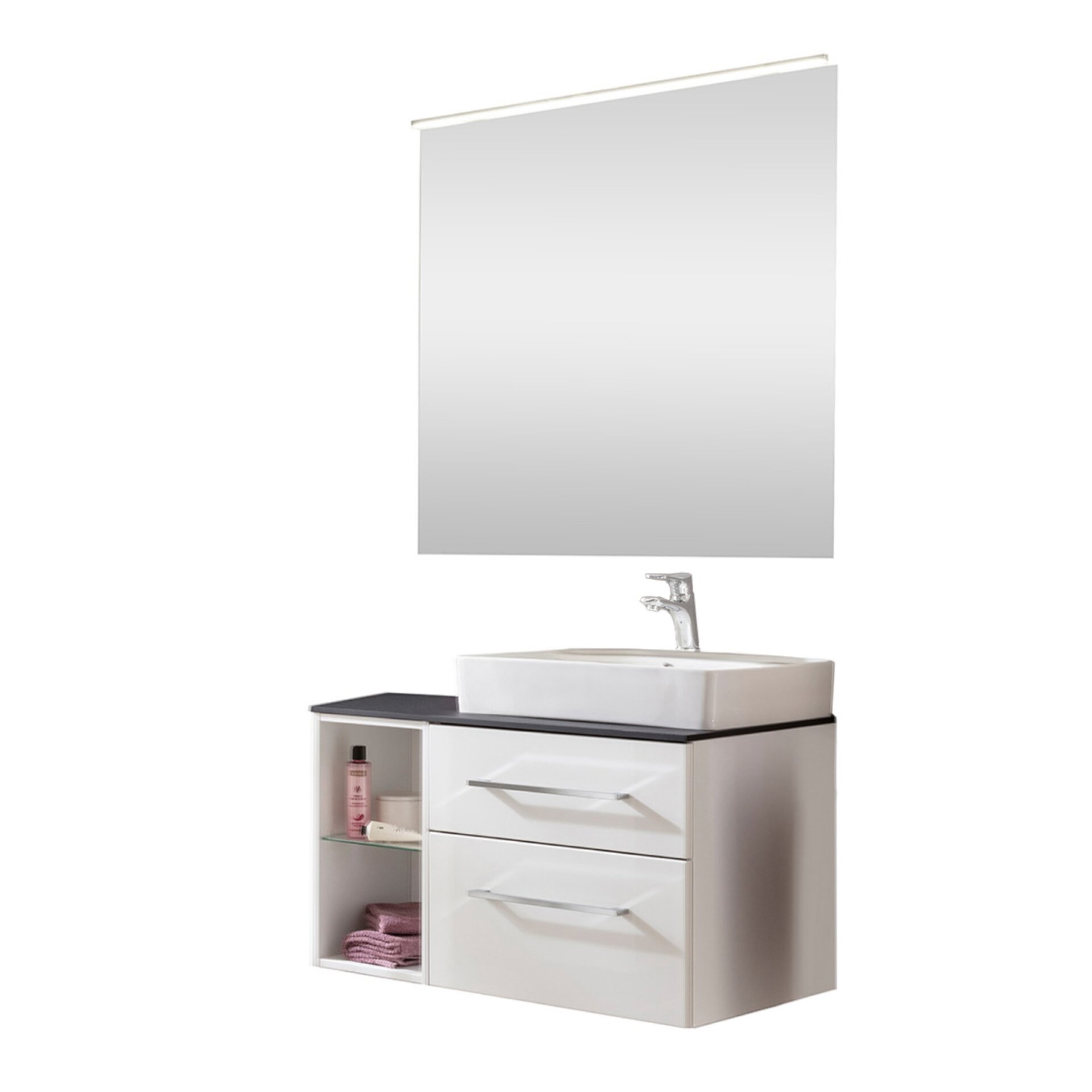 Jet-Line Badset Rapperswil 90cm - Schwarz Hochglanz Waschtisch Mit Soft Close