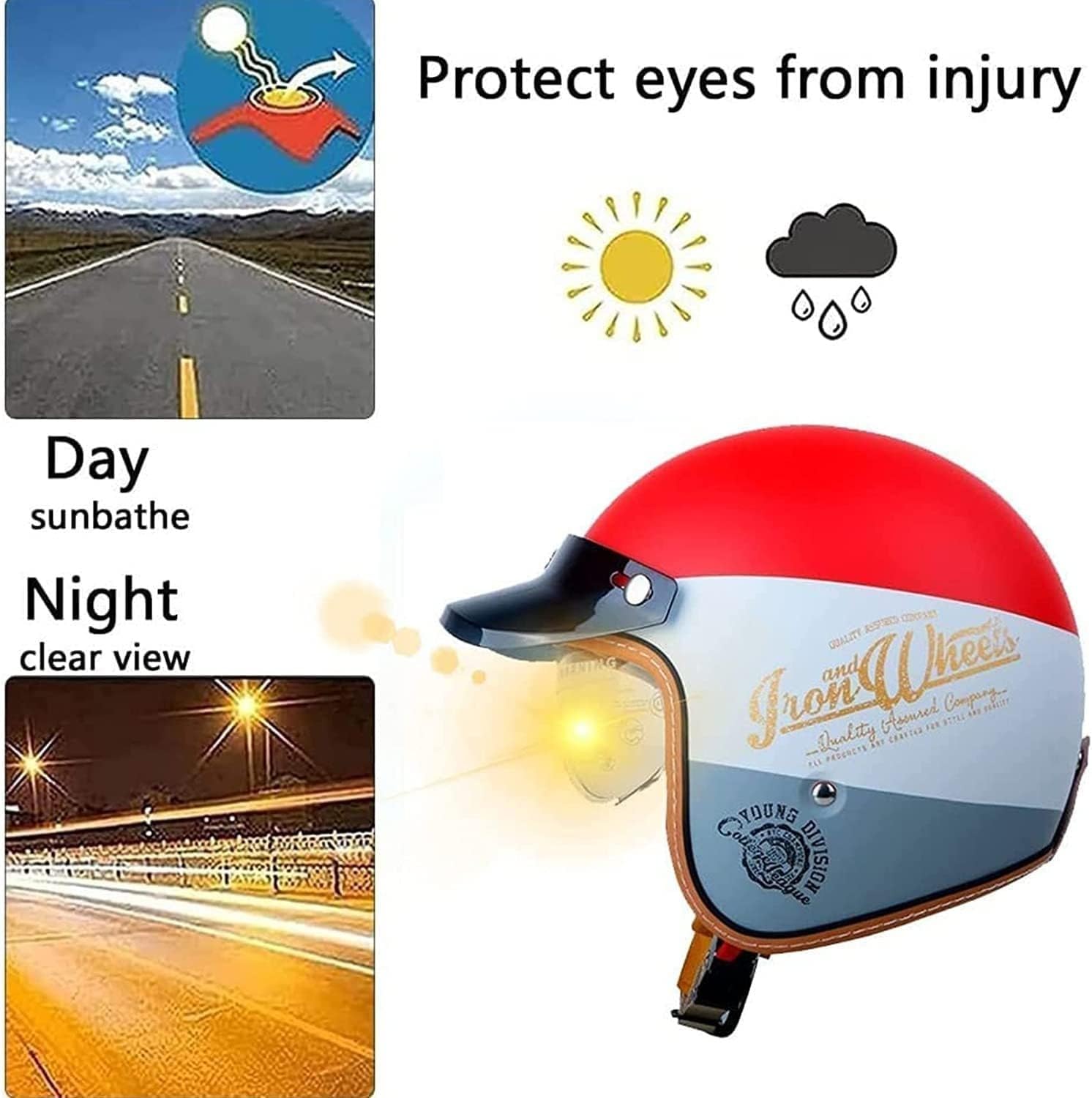 Sicher und stylisch unterwegs! Der Kcolic Jethelm mit ECE-Zulassung bietet optimalen Schutz bei maximalem Komfort. Mit praktischem Doppelvisier - das integrierte Sonnenvisier schützt vor blendender Sonne. Der ABS-Helmkörper mit EPS-Innenlage dämpft Stöße perfekt ab. Das herausnehmbare Innenfutter ist atmungsaktiv und waschbar. Der Edelstahl-Schnellverschluss macht das An- und Ablegen zum Kinderspiel. Mit nur 1kg Gewicht super leicht und angenehm zu tragen. Passt für Kopfumfänge 61-63cm (2XL). Ideal für Roller, Chopper und Motorräder. Sieh gut aus und bleib sicher!
