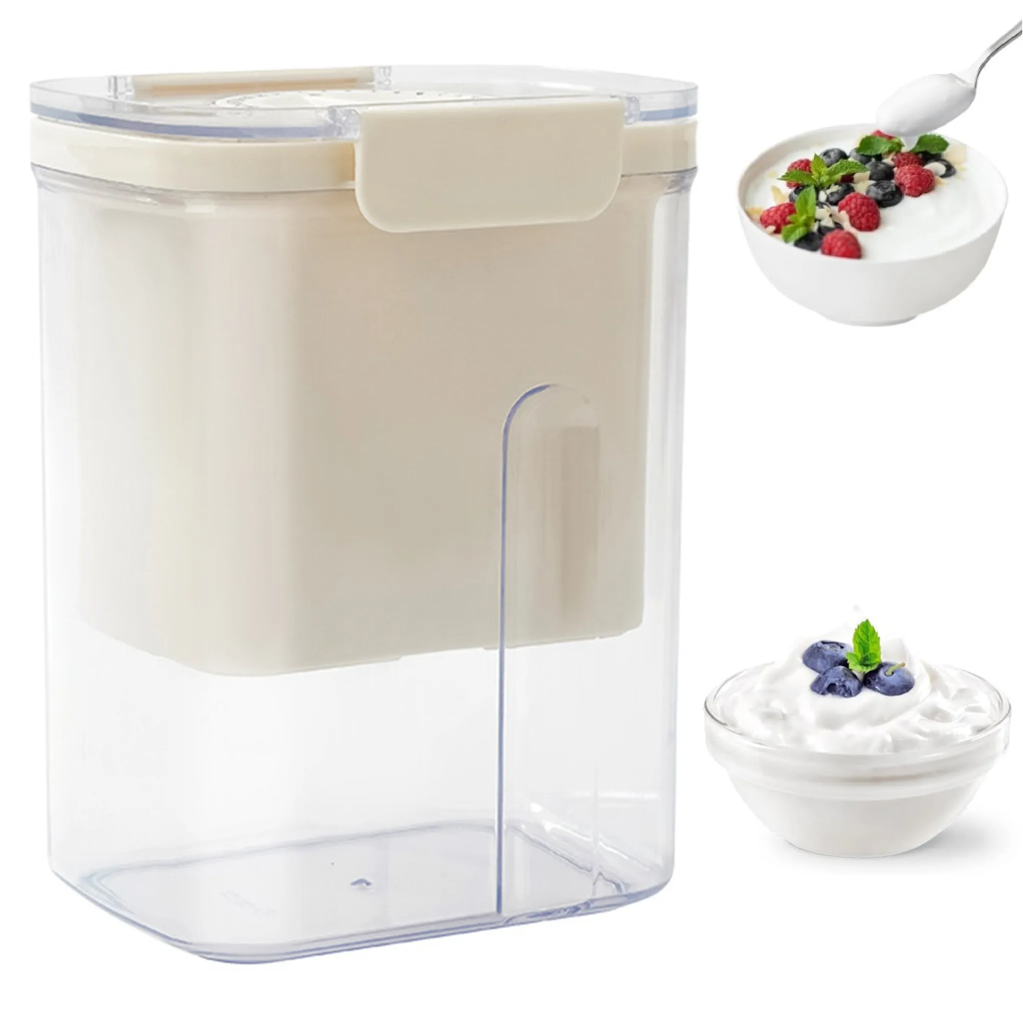 Joghurt-Liebhaber aufgepasst! Mit diesem griechischen Joghurtsieb machst du cremigen Joghurt wie vom Profi. Einfach normalen Joghurt ins Sieb geben, Deckel drauf und für einige Stunden in den Kühlschrank stellen. Die Molke tropft ab und übrig bleibt super cremiger griechischer Joghurt. Mit 3 Filtertüchern und einer Druckfeder geht's besonders schnell. Der transparente Behälter zeigt dir den Fortschritt. Perfekt auch für Nussmilch oder als Teefilter. So einfach war Joghurt machen noch nie!
