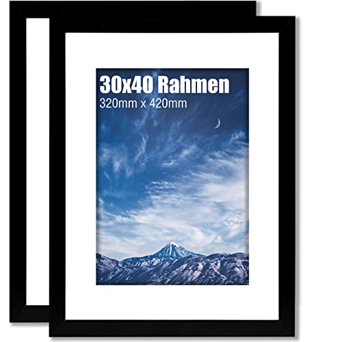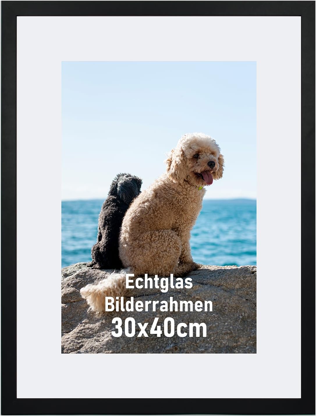 Joyshare Bilderrahmen 30x40cm Mit Passepartout - Schwarz Holz Natur Acrylglas