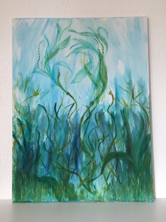 Jubonexis Aquarell Seetang Leinwandbild - Maritime Wanddekoration 40x40cm