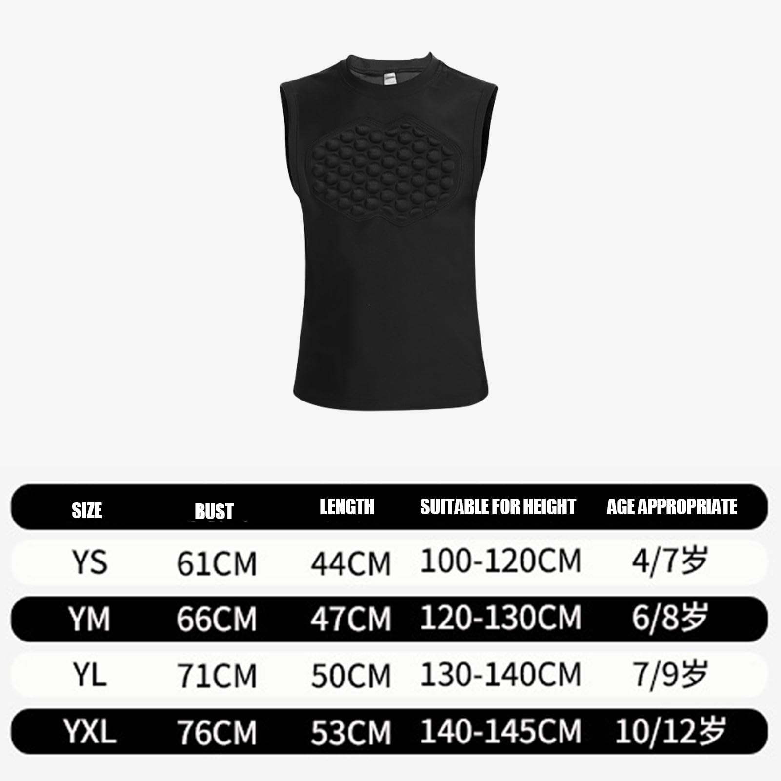 Sicherheit beim Sport für junge Athleten! Dieses gepolsterte Kompressionsshirt schützt Schultern, Brust, Rippen und Rücken mit speziellen EVA-Polstern. Die Anti-Rutsch-Streifen an Ausschnitt und Rücken sorgen dafür, dass das Shirt beim Training nicht verrutscht. Aus elastischem, atmungsaktivem Material das Schweiß ableitet und schnell trocknet. Perfekt für Fußball, Basketball, Rugby und andere Kontaktsportarten. Leicht und bequem zu tragen - dein Kind kann sich voll auf den Sport konzentrieren, ohne Angst vor Verletzungen!