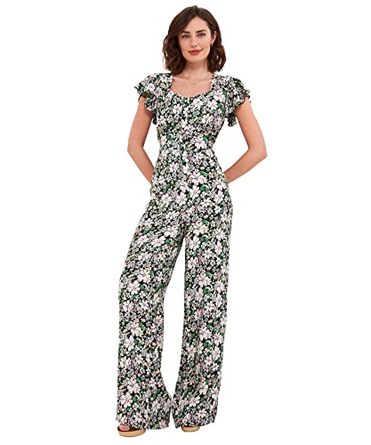 Stylish und super bequem! Dieser Damen Jumpsuit mit zartem Blumenmuster ist dein neuer Liebling für den Sommer. Der weite Beinschnitt sorgt für lässige Eleganz und totale Bewegungsfreiheit. \\n\\nAus weicher Viskose-Baumwoll-Mischung (95% Viskose, 5% Elasthan) - angenehm auf der Haut und perfekt für heiße Tage. Der tiefe V-Ausschnitt und der hintere Reißverschluss verleihen dem Outfit eine dezente, stylische Note. \\n\\nGrößen von S bis 2XL - für jede Figur die perfekte Passform! Die verstellbaren Träger und die taillierte Schnittführung betonen deine Silhouette auf schmeichelhafte Weise. \\n\\nPraktische Seitentaschen für Handy, Schlüssel oder Sonnenbrille. Maschinenwaschbar bei 30°C - super pflegeleicht! Perfekt für Hochzeiten, Gartenpartys, Strandtage oder einfach für einen stylischen Stadtbummel. \\n\\nKombinierbar mit Sandalen, Sneakern oder High Heels - dieser Jumpsuit passt zu jedem Anlass! Ein echter Allrounder, der in deinem Kleiderschrank nicht fehlen darf. Hol dir den sommerlichen Look, der Komfort und Style perfekt vereint!