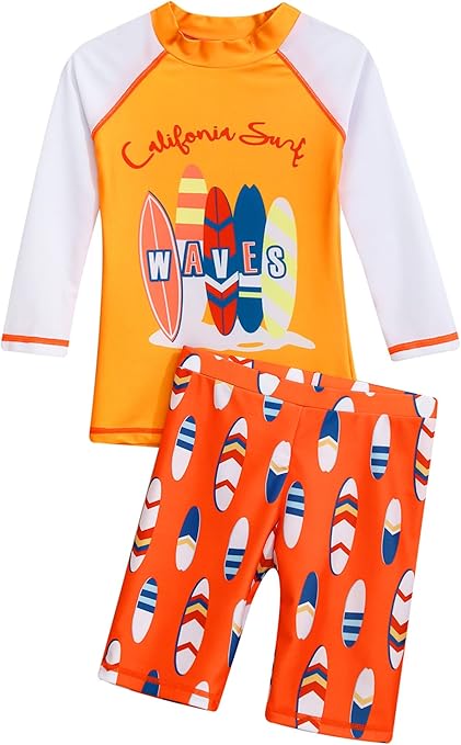 Jungen Badeanzug 3-teilig - UV Schutz Langarm Rashguard Mit Badehose & Shorts