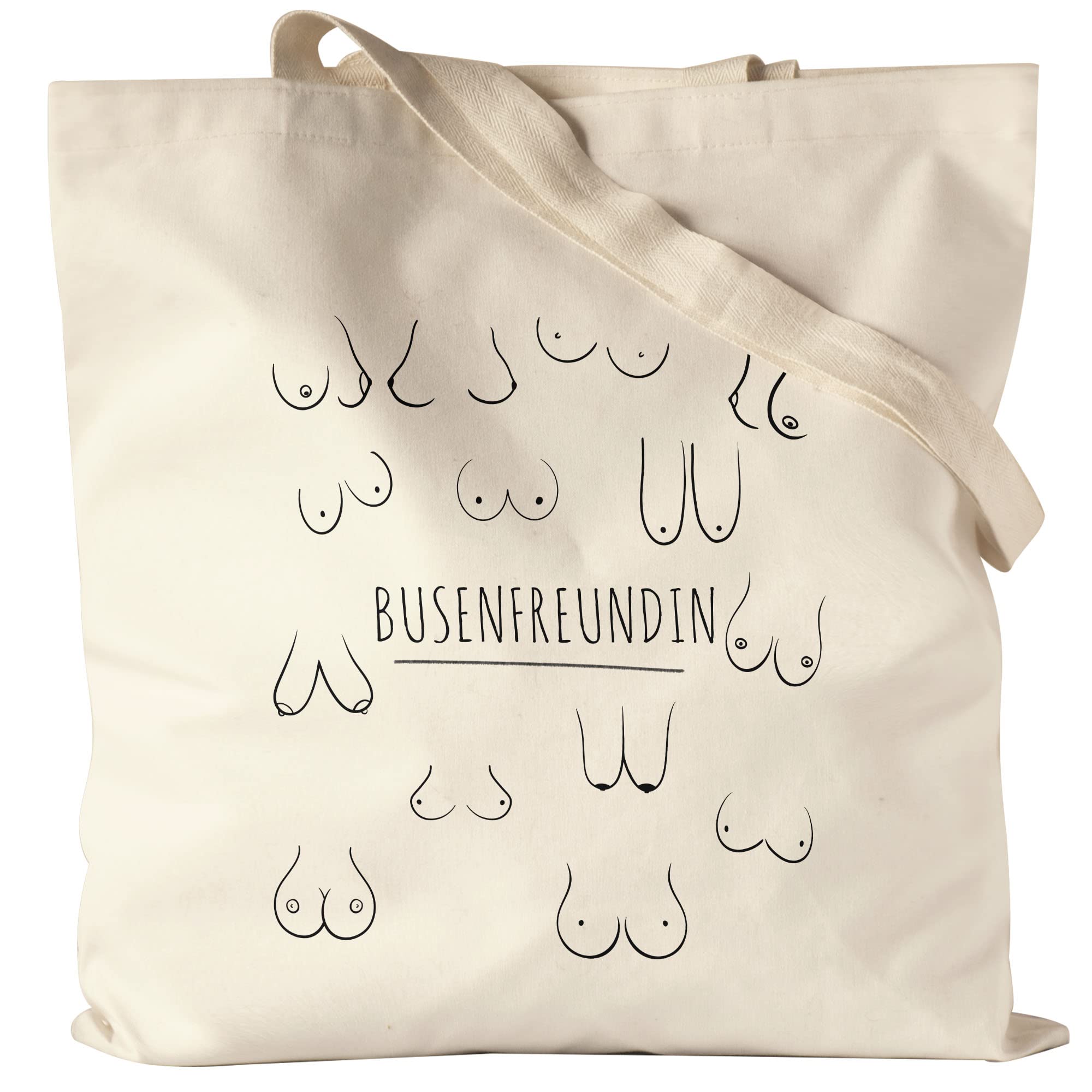 Oh, dieser Jutebeutel ist das perfekte Geschenk für deine beste Freundin! Mit dem witzigen \Busenfreundin\-Design zeigt er, was Freundschaft wirklich bedeutet. Aus 100% zertifizierter Bio-Baumwolle in Natur-Weiß, 38x42cm groß mit 10l Volumen. Der 33cm lange Henkel liegt perfekt in der Hand. Mit wasserfestem Druck in strahlenden Farben - ein echter Hingucker! Ob für Einkäufe, als Sporttasche oder einfach als täglicher Begleiter - dieser Beutel macht immer eine gute Figur. Ein persönliches Geschenk von Hey!Print, liebevoll verpackt und schnell geliefert. So sagst du \Danke\ für eine echte Freundschaft!