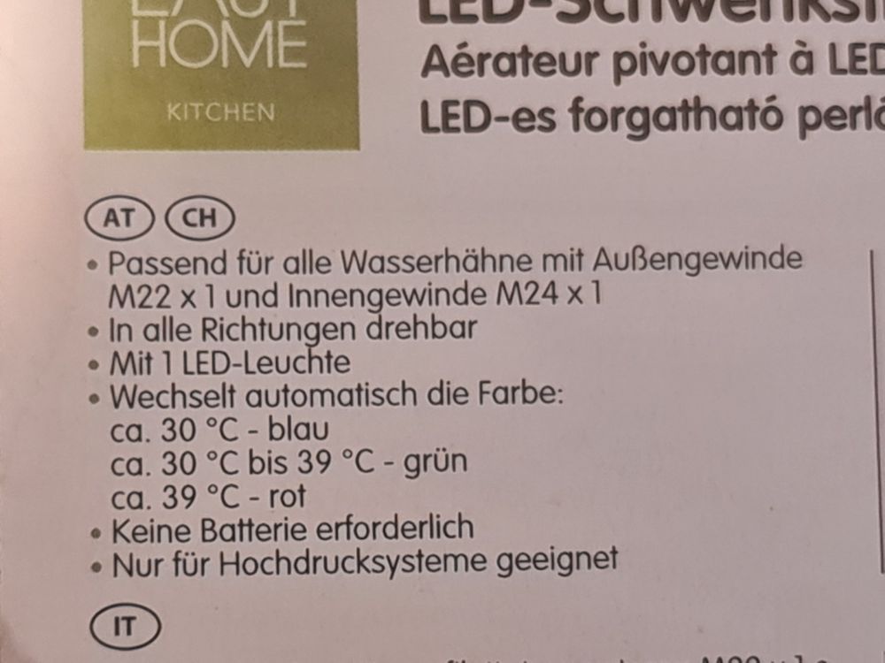 LED Wasserhahn Aufsatz Küche - Temperatur Anzeige Mit Farbwechsel M22/M24