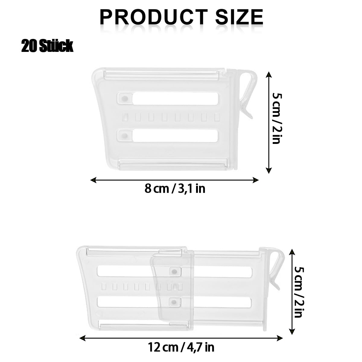 Boah, endlich Ordnung im Kühlschrank! Diese 16 transparenten Organizer sind die Lösung gegen das Chaos in Deinem Kühlschrank. Aus stabilem Kunststoff gefertigt, sind sie geruchlos und brechen nicht leicht. Das coole Feature: Sie sind von 8 cm bis 12 cm verstellbar - passen sich also flexibel an verschiedene Kühlschrank-Seitentüren an. Mit praktischen Befestigungsclips halten sie sicher fest und fallen nicht herunter. Einfach aufhängen - keine Werkzeuge nötig! Perfekt für Getränkedosen, Saucenflaschen, Eier, Joghurt oder kleine Lebensmittel. So wird Dein Kühlschrank endlich übersichtlich und Du findest alles sofort. Auch für Gefrierschrank oder Aufbewahrungsboxen geeignet. Einfach einklipsen und sich über den ordentlichen Kühlschrank freuen!