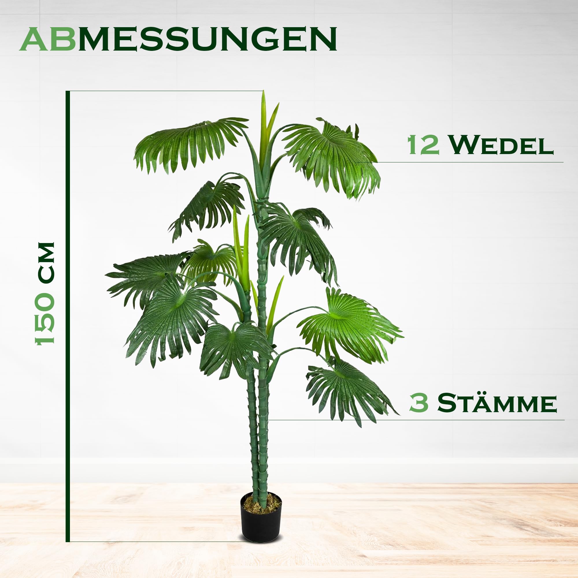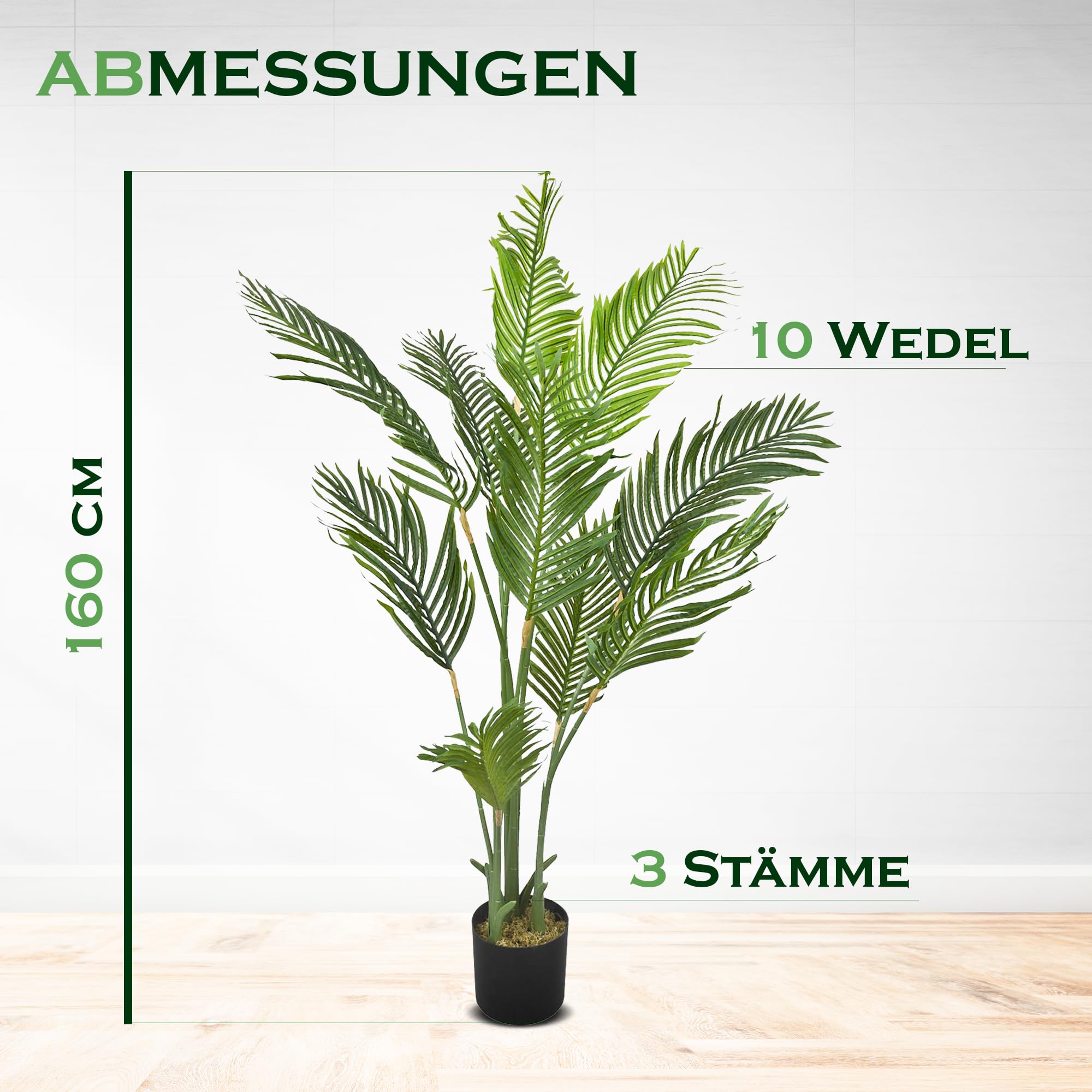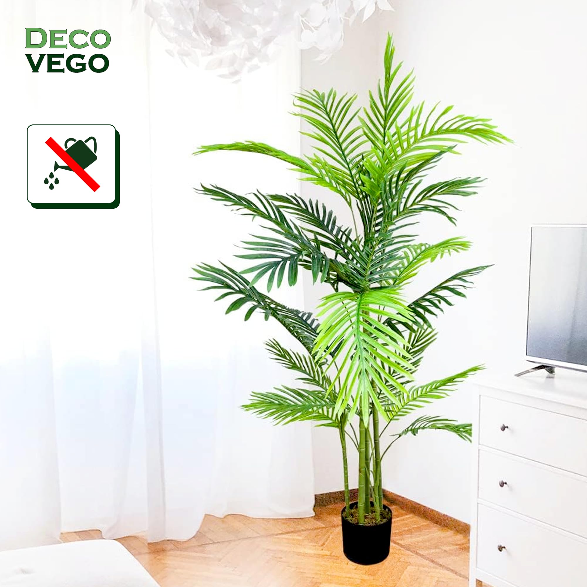 Grüne Oase ohne Pflegeaufwand! Diese künstliche Kokospalme sieht aus wie echt - aber du musst sie nie gießen! 🌴\n\nHöhe: 140cm | Stämme: 2 | Wedel: 39 | Material: Hochwertige Kunststoffe\n\nEhrlich gesagt: Man muss zweimal hinschauen, um zu erkennen, dass sie nicht echt ist! Jedes Detail ist naturgetreu nachgebildet.\n\nPerfekt für Wohnzimmer, Büro oder geschützte Balkone. Immer grün, immer frisch - ohne Gießen, Düngen oder Beschneiden!\n\nEinfach aufstellen und genießen! Die 2-stämmige Königspalme bringt sofort tropisches Flair in deine vier Wände. Ein echter Hingucker!