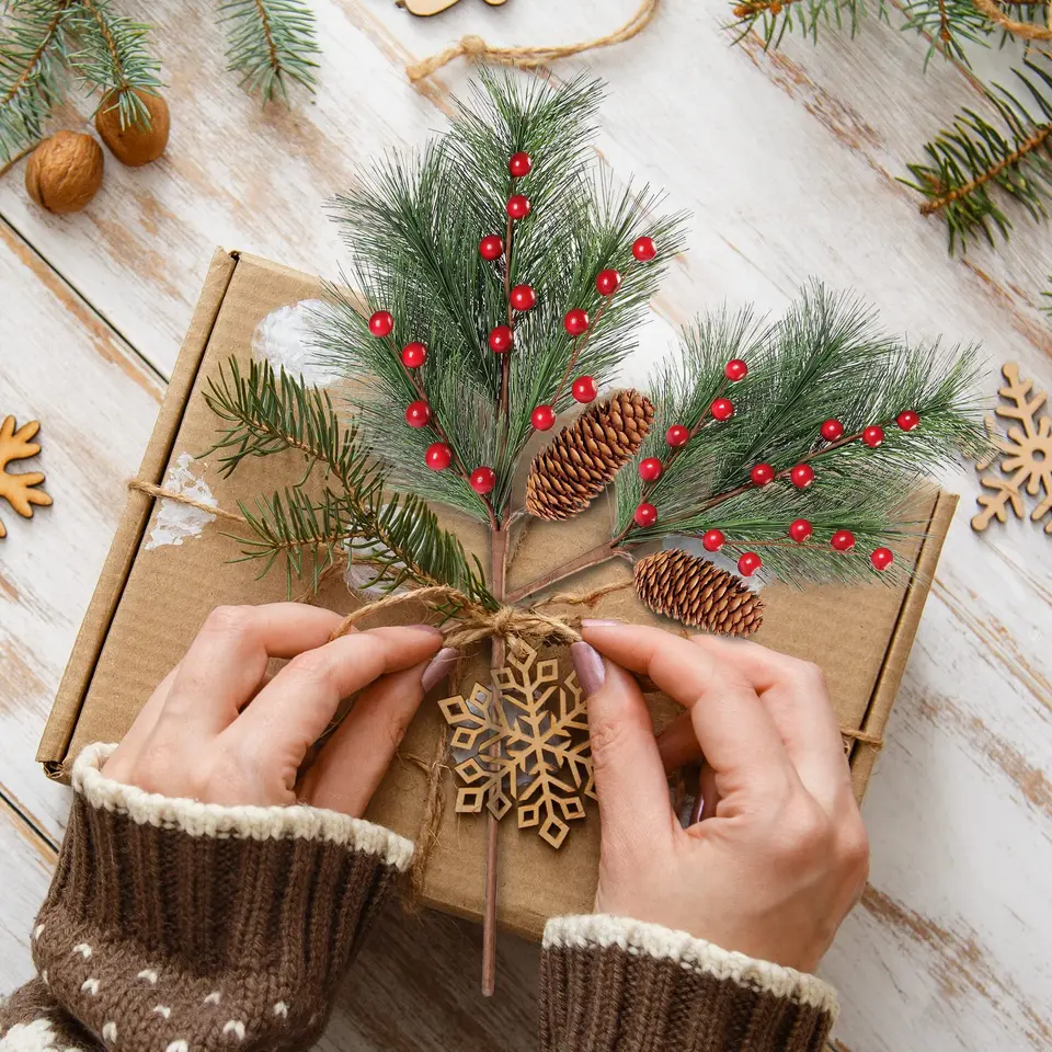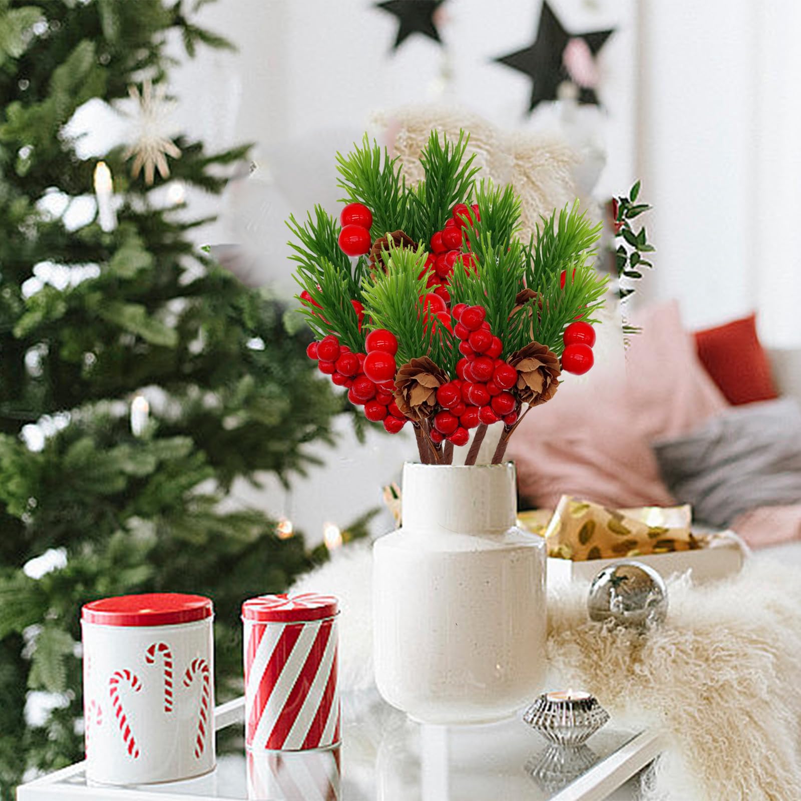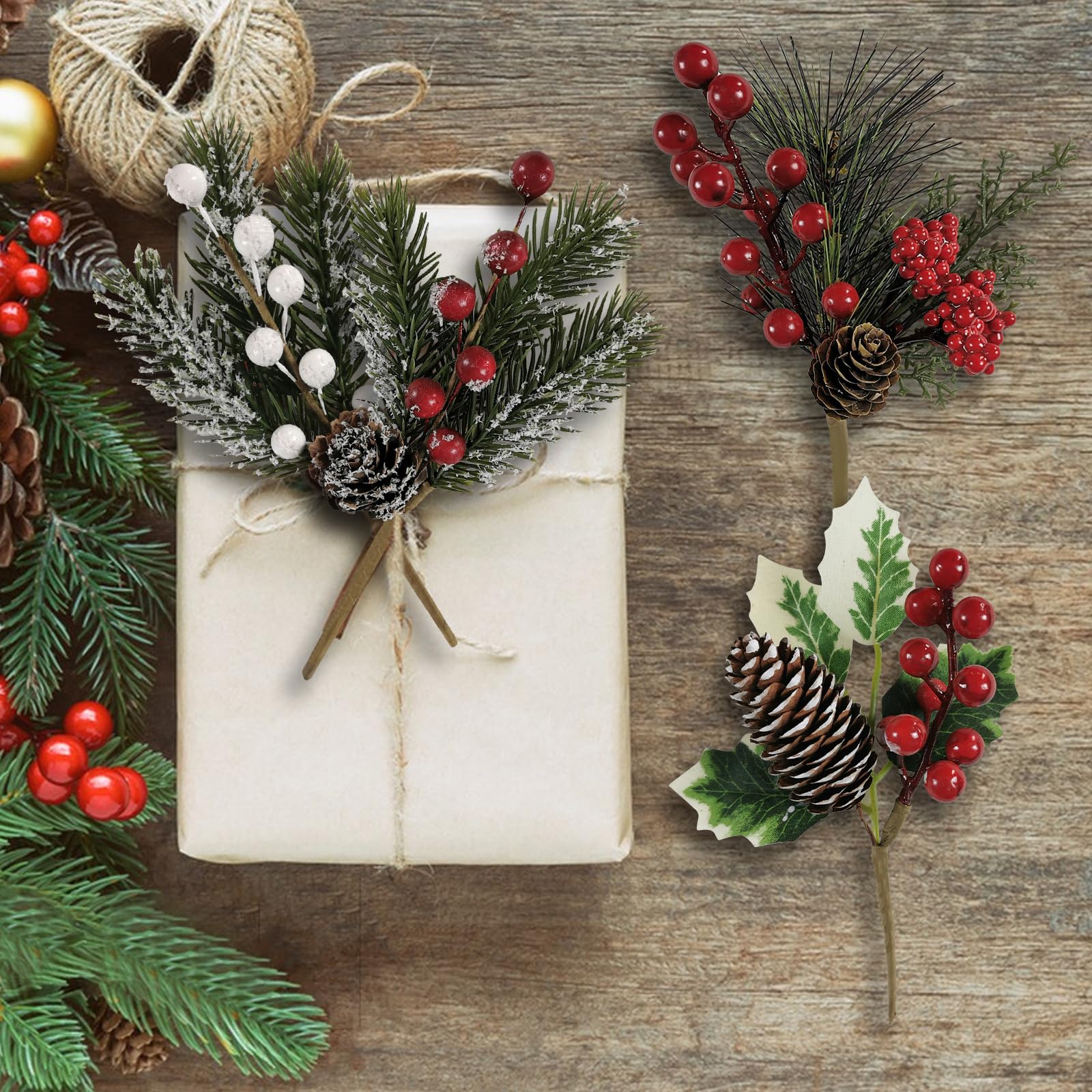 Künstliche Weihnachtsbeeren Zweige Mit Tannenzapfen - 20 Stück DIY Deko
