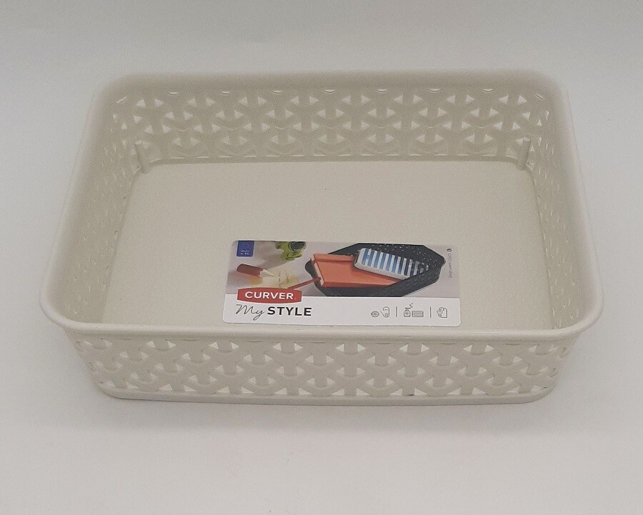 Ordnung muss sein! Dieses Curver My Style Körbchen im trendigen Rattan-Design ist der perfekte Aufbewahrungshelfer. Mit den Maßen 36x26x6cm ideal für A4-Unterlagen, Büromaterial oder Kosmetik. Aus robustem Polypropylen, leicht zu reinigen und super praktisch. Stapelbar und modular - du kannst mehrere Körbe platzsparend übereinander stellen. Vielseitig einsetzbar: Im Büro für Stifte und Papiere, im Badezimmer für Make-up, in der Küche für Utensilien. Das patentierte Rattan-Design sieht nicht nur gut aus, sondern ist auch haptisch ansprechend. Perfekt für alle, die Wert auf Ordnung und Style legen. Ein echter Allrounder für jeden Haushalt!