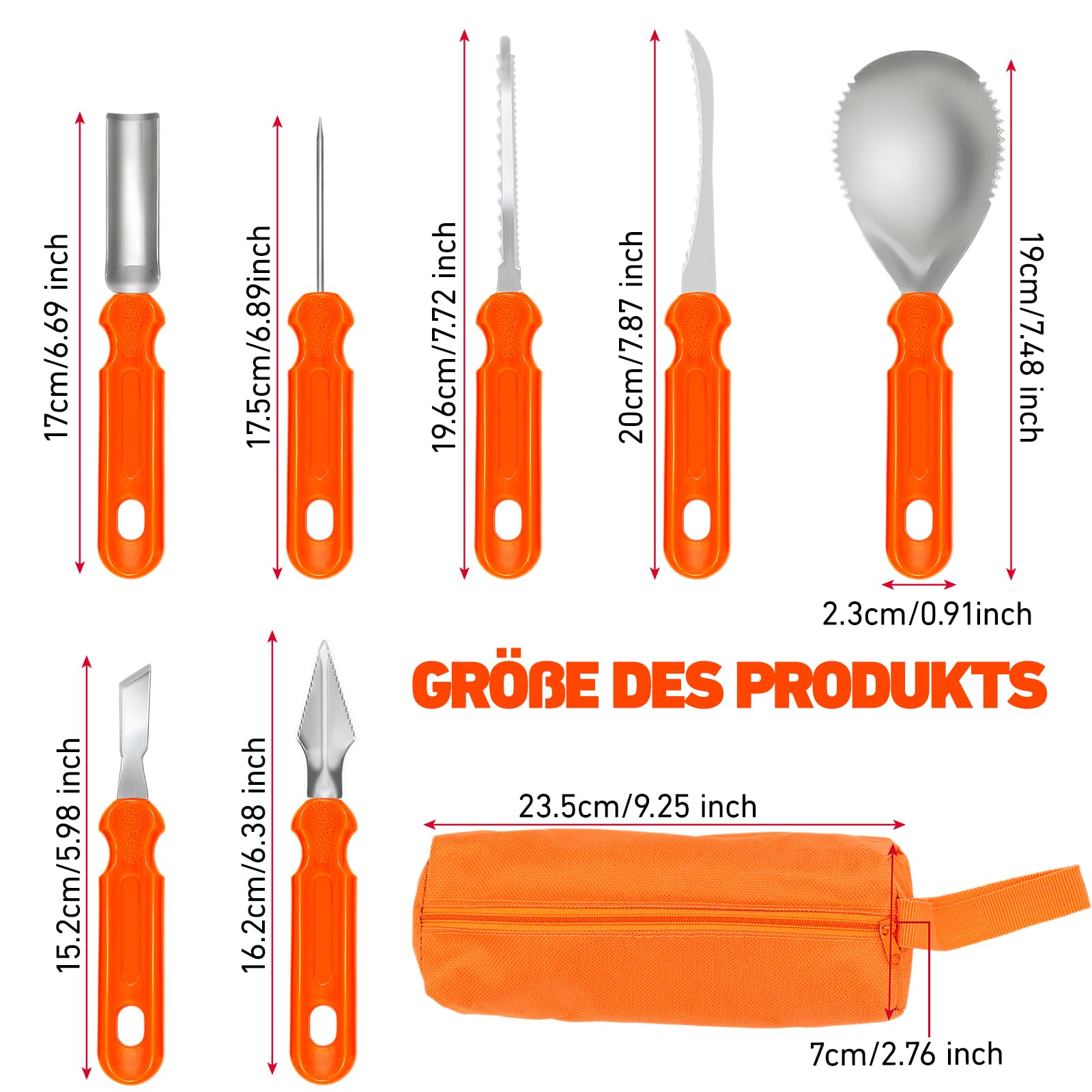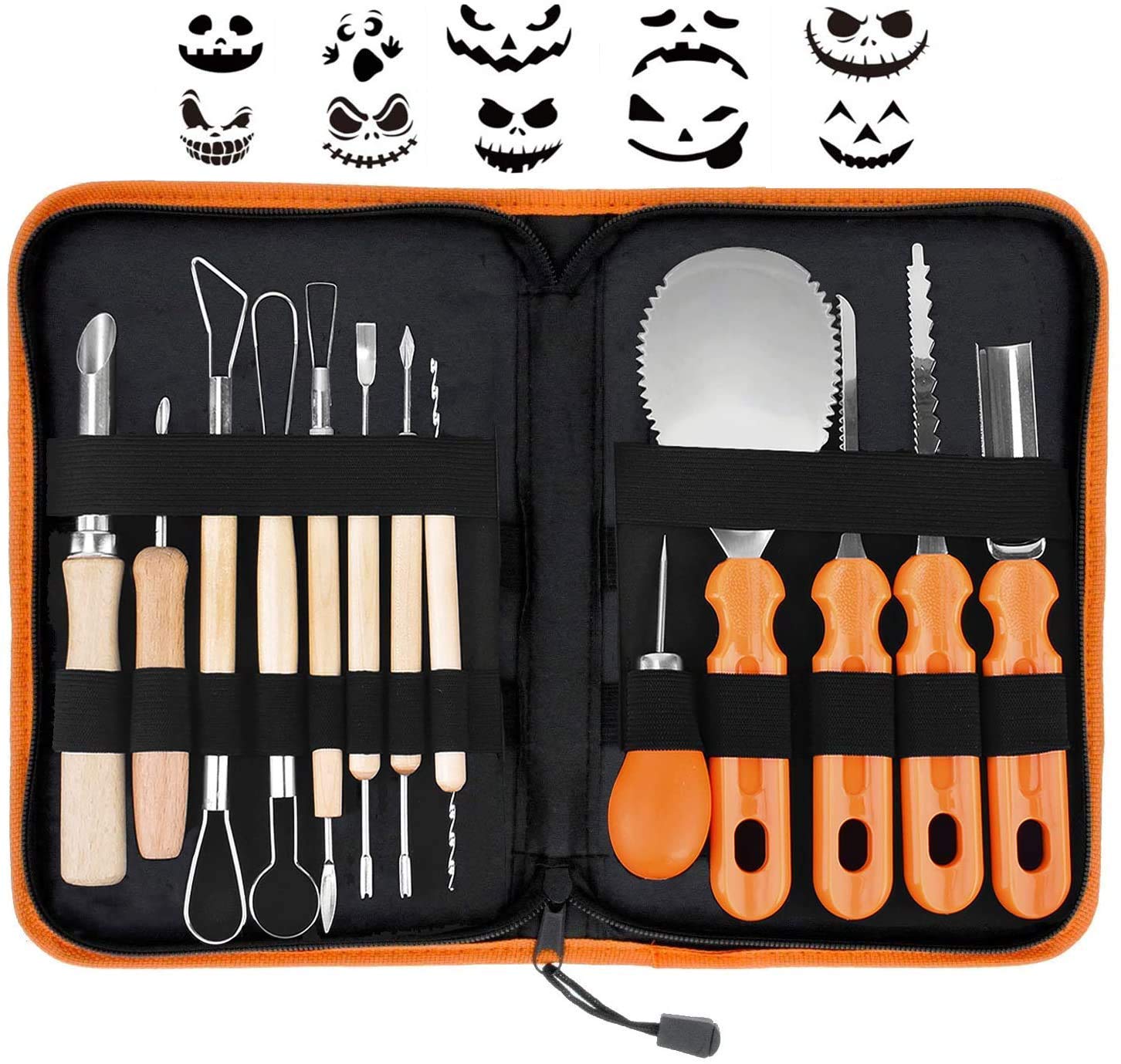Kürbis Schnitzset 7-teilig Mit 25 Vorlagen - Edelstahl Werkzeuge Für Halloween