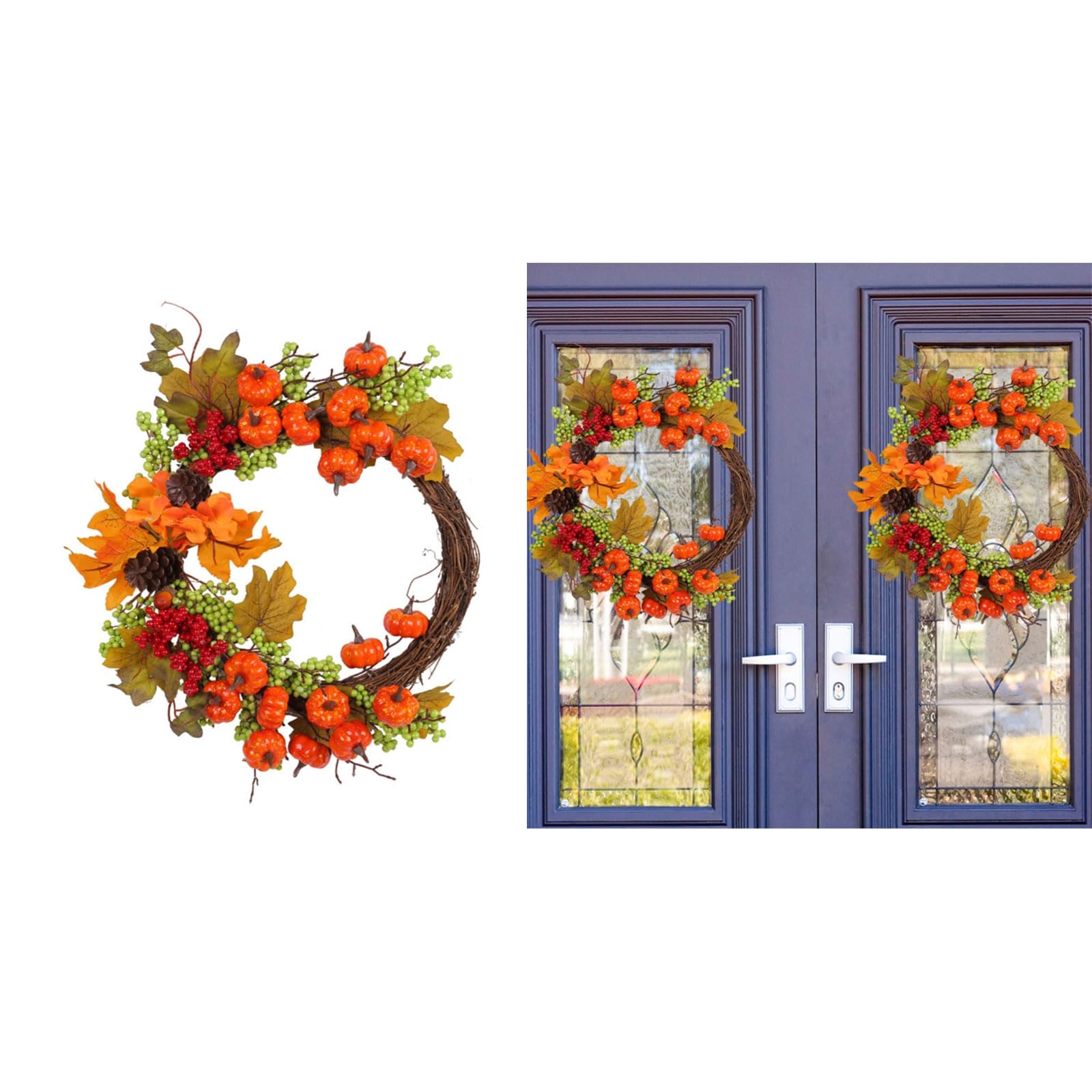 Herbstzeit ist Kranzzeit! Dieser wunderschöne Herbstkranz bringt gemütliche Stimmung an deine Haustür. Mit künstlichen Pfingstrosen und Kürbissen sieht er total natürlich aus - fast wie frisch gepflückt! Im rustikalen Bauernhaus-Stil passt er perfekt zu Herbst und Erntedank. Mit 40 cm Durchmesser ist er ideal für Türen, Wände oder sogar als Tischdekoration. Das Beste: Er ist für innen und außen geeignet und kommt sogar mit nem Saugnapfhaken. Handgefertigt und langlebig - du kannst ihn Jahr für Jahr verwenden. Mach dein Zuhause herbstlich gemütlich - dieser Kranz ist die perfekte Deko!