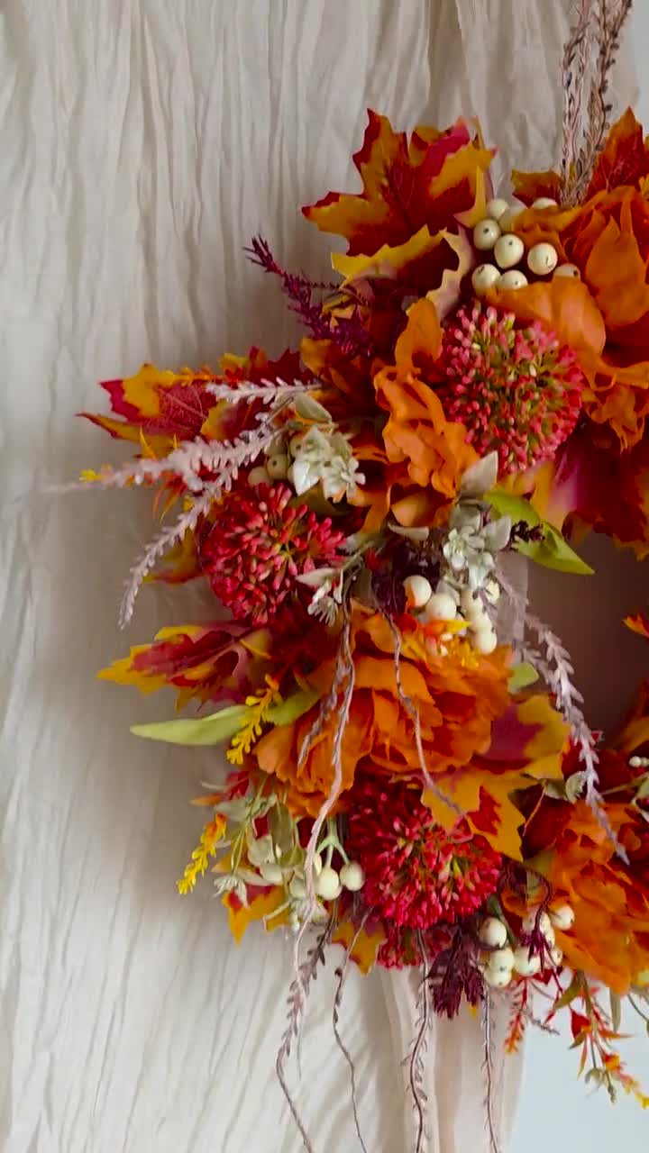 Herbstkranz Mit Pfingstrosen & Kürbissen | 40cm Türkranz Für Herbstdeko | Innen & Außen