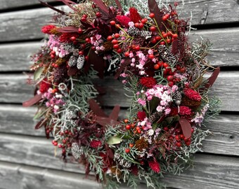 Herbstzeit ist Deko-Zeit! Dieser wunderschöne Herbstkranz bringt die bunten Farben des Indian Summers in dein Zuhause. Mit naturgetreuen Hortensien, Pfingstrosen und kleinen Kürbissen in warmen Herbsttönen von Weiß bis Rot sieht er täuschend echt aus.
