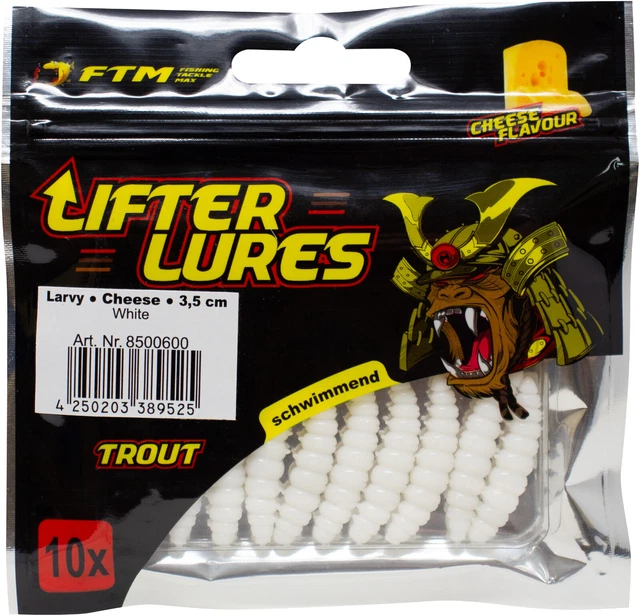 Forellen-Alarm! Diese Omura Baits Larvy Köder mit Käse-Aroma sind einfach unwiderstehlich für hungrige Fische. Mit 3,5cm Größe perfekt für Forellen in jedem See. \\n\\nDas extrem weiche Material und der starke Auftrieb machen sie ideal für auftreibende Montagen oder das Schleppen mit Pose. Die Fische können einfach nicht widerstehen! \\n\\nErhältlich in 19 verschiedenen Farben - für jede Wasser- und Lichtverhältnisse die passende Variante. Ob Portionsforellen oder dicke Lachse - diese Köder bringen Erfolg. \\n\\n10 Stück pro Packung, also genug für mehrere Angeltage. Einfach auf YouTube nach 'MikesBigTrouts' suchen und sieh selbst, wie effektiv diese Köder sind. Probier's aus und fang deinen nächsten Big One!