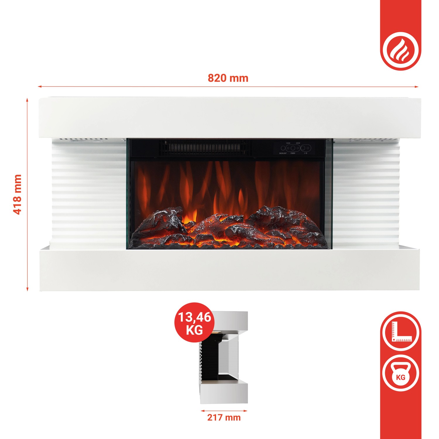 KAMINIO Elektrokamin Leni Weiß - Mit 3D-Flammeneffekt & Heizfunktion Für Gemütliche Atmosphäre