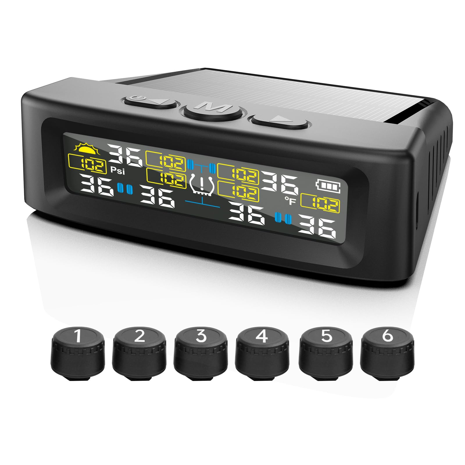 KAOLALI TPMS Reifendruckkontrolle - 6 Sensoren, Solar & USB Ladung