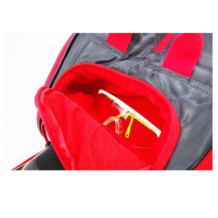 Das Hauptfach bietet reichlich Stauraum für Bälle, Kleidung und Accessoires. Die zwei separaten Schlägerfächer schützen deine Schläger vor Beschädigungen - kein lästiges Anstoßen mehr!