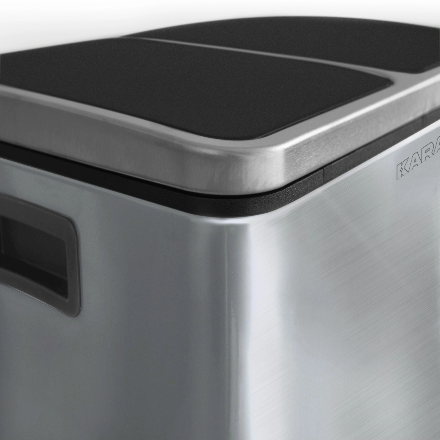 Ordnung und Stil in der Küche! Der KARAT Mülleimer in Anthrazit bietet mit seinem 2-Fach-Trennsystem die perfekte Lösung für Mülltrennung. Zwei herausnehmbare 30-Liter-Inneneimer aus Kunststoff machen die Entsorgung super einfach. Der Softclose-Mechanismus sorgt für leises, sanftes Schließen der Deckel - kein lautes Zuklappen mehr! Das Metall-Gehäuse in silber-schwarz passt zu jeder Einrichtung. Praktischer Treteimer für hygienische Bedienung. Verschiedene Größen verfügbar (2x15L, 2x30L, 3x18L), aber dieses 2x30L-Modell ist ideal für größere Haushalte. Endlich ein Mülleimer, der nicht nur funktional, sondern auch noch gut aussieht!