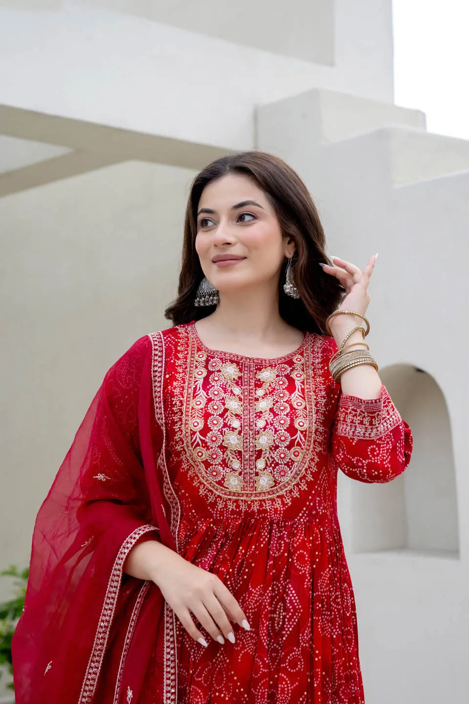 KD Damen Anarkali Kurta Set Mit Druck - Ethnisches Outfit Mit Dupatta