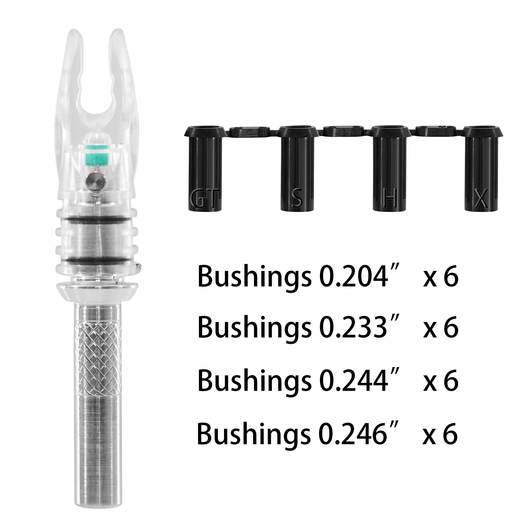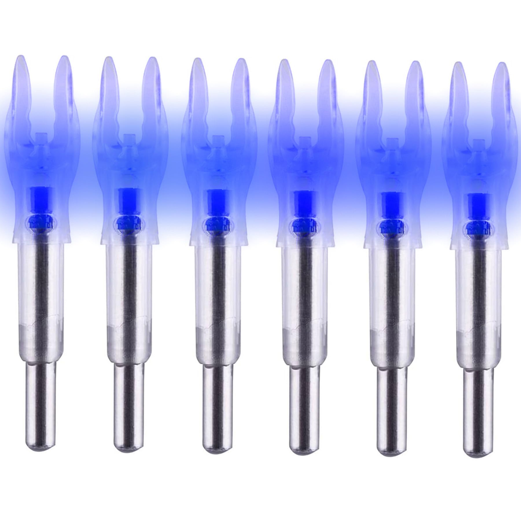 Pfeile die leuchten! Dieses 6er Set beleuchteter Nocken macht deine Pfeile in der Dämmerung sichtbar. Passend für Pfeile mit .204, .233, .244 und .246 Innendurchmesser. Einfach einsetzen - keine Montage nötig. Leuchten sofort beim Abschuss und haben über 30 Stunden Akkulaufzeit. Aus schlagfestem PC-Material für maximale Haltbarkeit. Mit im Lieferumfang: Schraubendreher für einfache Handhabung. Nie wieder verlorene Pfeile! Perfekt für alle Bogenschützen, die auch bei schlechten Lichtverhältnissen treffen wollen.