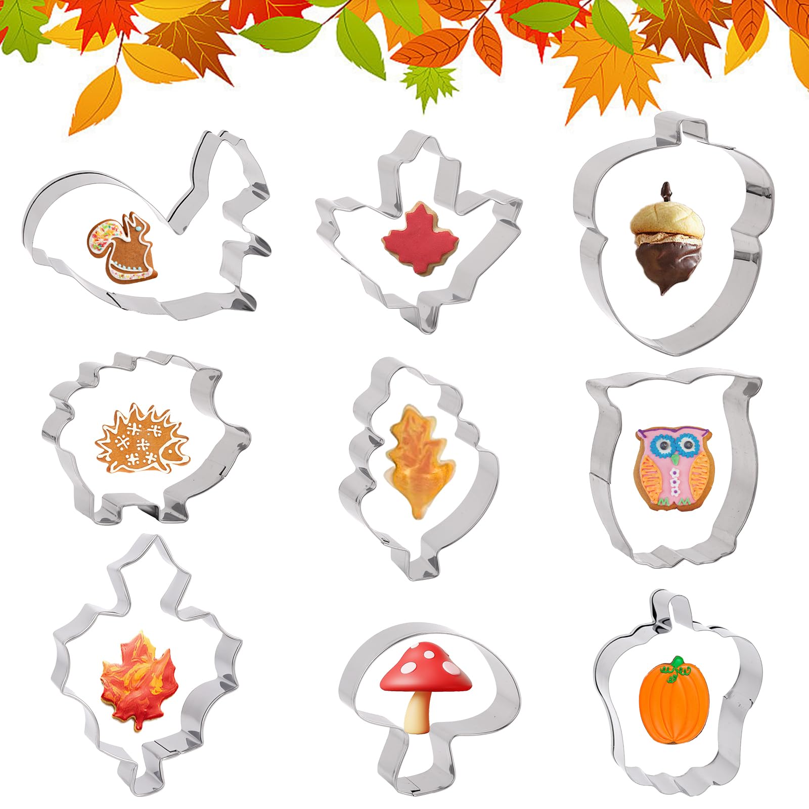 KEWUF Herbst Ausstechformen 12-teilig - Edelstahl Keksausstecher Blätter Motive