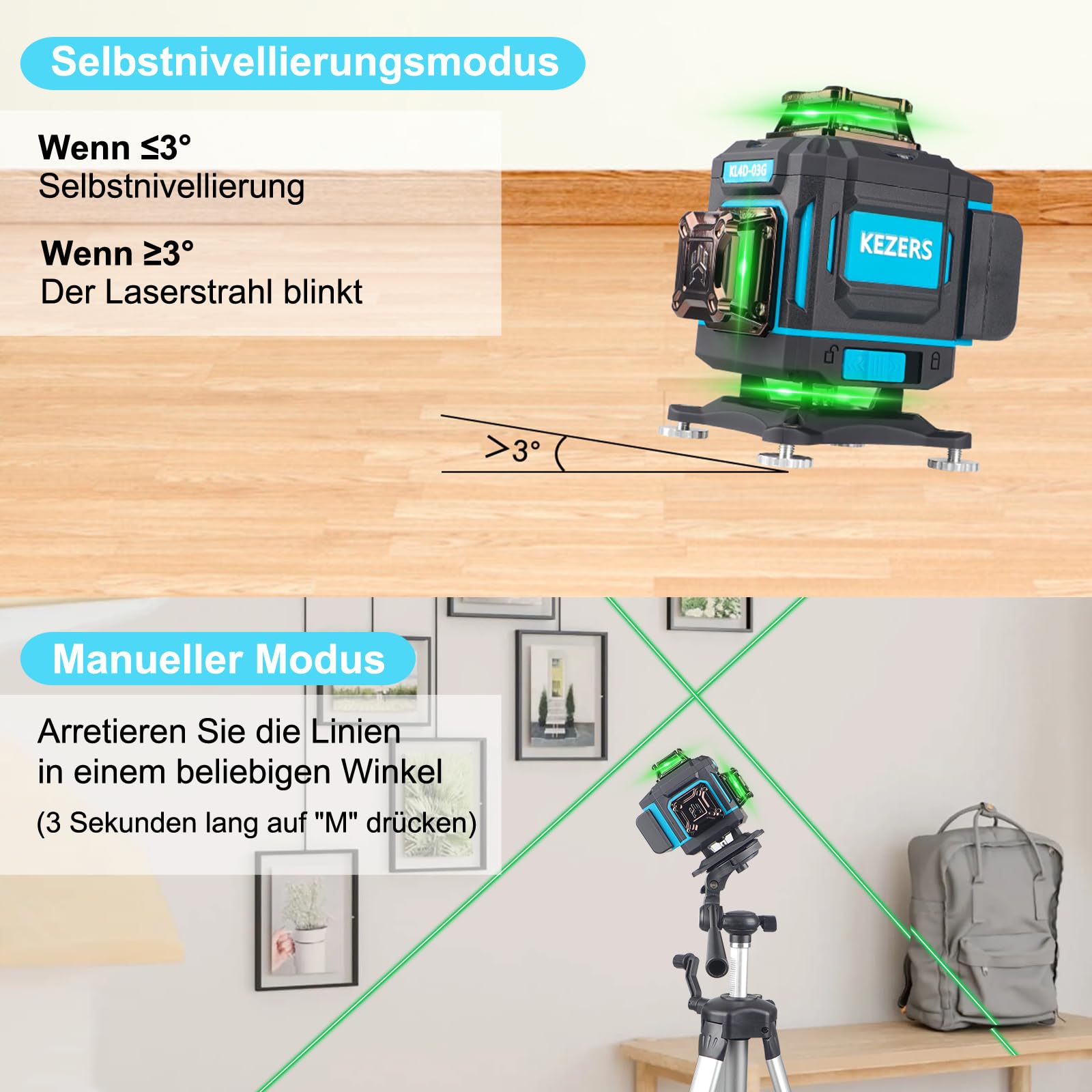 KEZERS Kreuzlinienlaser Set Mit Stativ - 4x360° Laserwasserwaage Mit Empfänger Für Bau & Renovierung