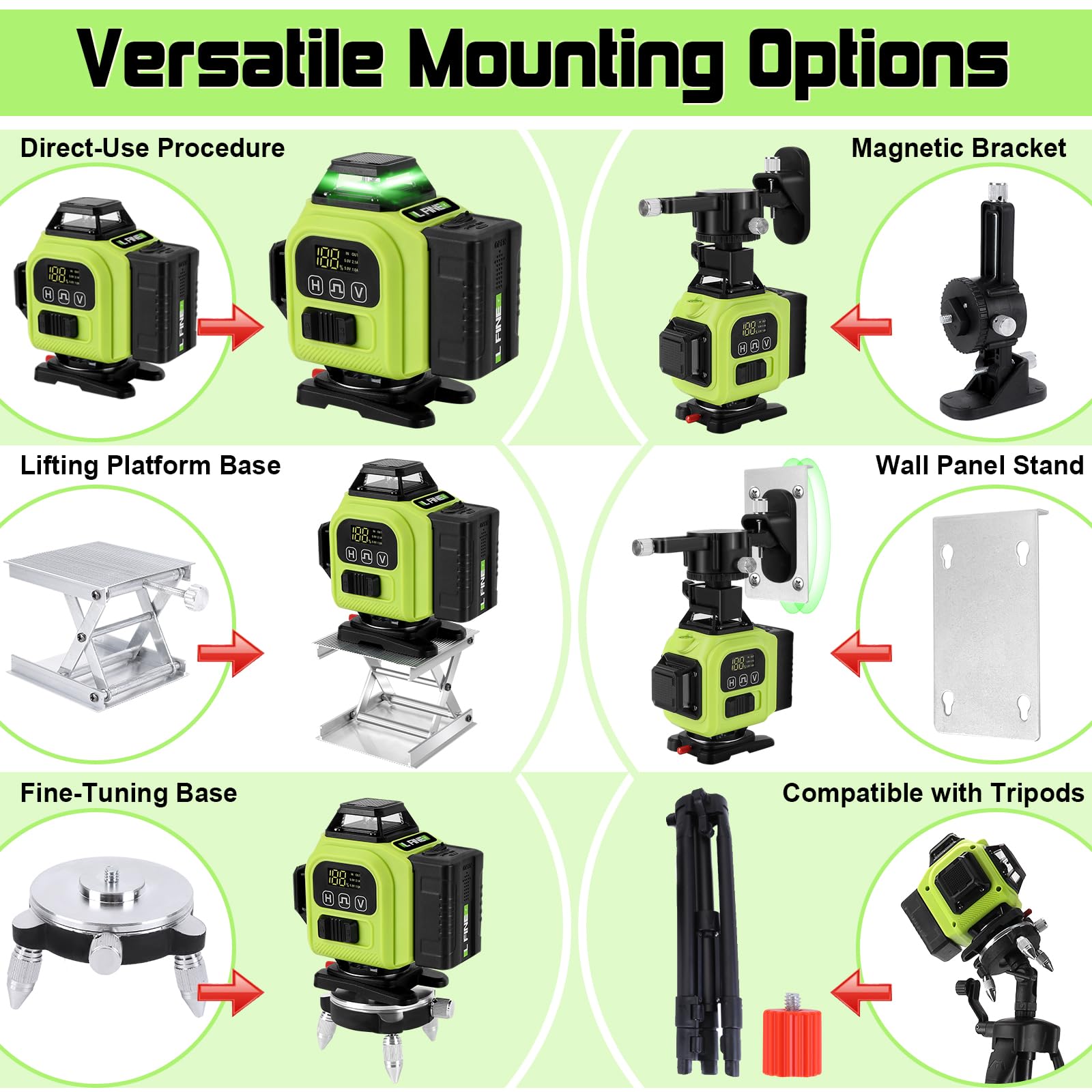 Professionelle Ergebnisse für Heimwerker und Profis! Das KEZERS Laser-Set macht jede Bau- und Renovierungsarbeit zum Kinderspiel. Mit vier 360° Laserebenen kannst du horizontal und vertikal gleichzeitig arbeiten - perfekt für Deckenmontagen, Fliesenlegen oder Bilderaufhängen. Das Touch-LCD-Display ermöglicht einfache Bedienung: Akkustand checken, Linien auswählen und zwischen Selbstnivellierung, Manuellmodus und Pulsmodus wechseln. Inklusive sind zwei starke 4000 mAh Akkus für bis zu 8 Stunden Betrieb, ein 3m Höhenmessstab, ein stabiles Stativ (52-154 cm) und ein Laserempfänger für Arbeiten im Freien (bis zu 60m Reichweite!). Die untere Laserlinie kann bis auf 1,5 cm über dem Boden positioniert werden - ideal für Fliesen und Pflastersteine. Mit Magnethalterung, Fernbedienung und allen notwendigen Zubehörteilen ist dieses Set dein kompletter Helfer für präzise Arbeiten im Innen- und Außenbereich!
