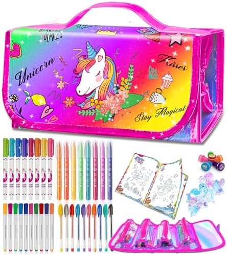 Ein Traum für alle Einhorn-Fans! Dieses KINSPORY Federmäppchen enthält 60 Teile: duftende Glitzerstifte, Drehwachsmaler, Stempelfilzer und mehr! Mit 2 Malbüchern und Tragegurt - alles super verpackt in einem süßen Einhorn-Design. Perfekt für Mädchen von 4-10 Jahren. Fördert die Kreativität und macht riesigen Spaß! Alle Stifte sind ungiftig und abwaschbar. Ideal als Geburtstagsgeschenk, zu Weihnachten oder für die Schule. Die vier Reißverschlussfächer sorgen für Ordnung. Dein Kind wird begeistert sein von diesem magischen Malset!