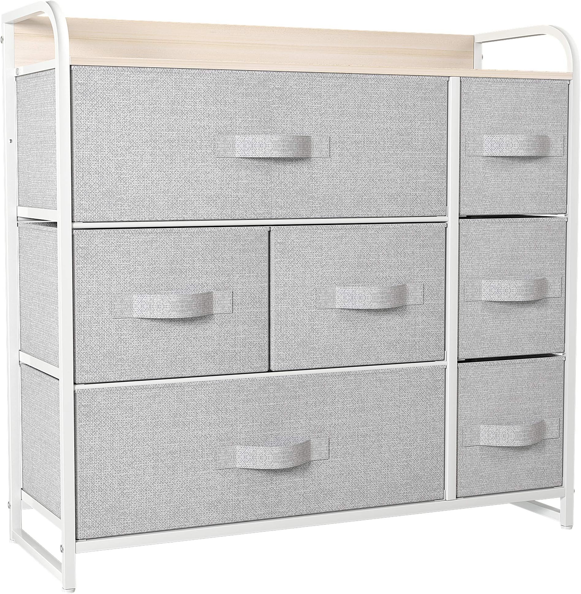KOMFOTTEU Bambus Kommode Mit 6 Stoff-Schubladen - 66x35x78,5cm Aufbewahrungsschrank