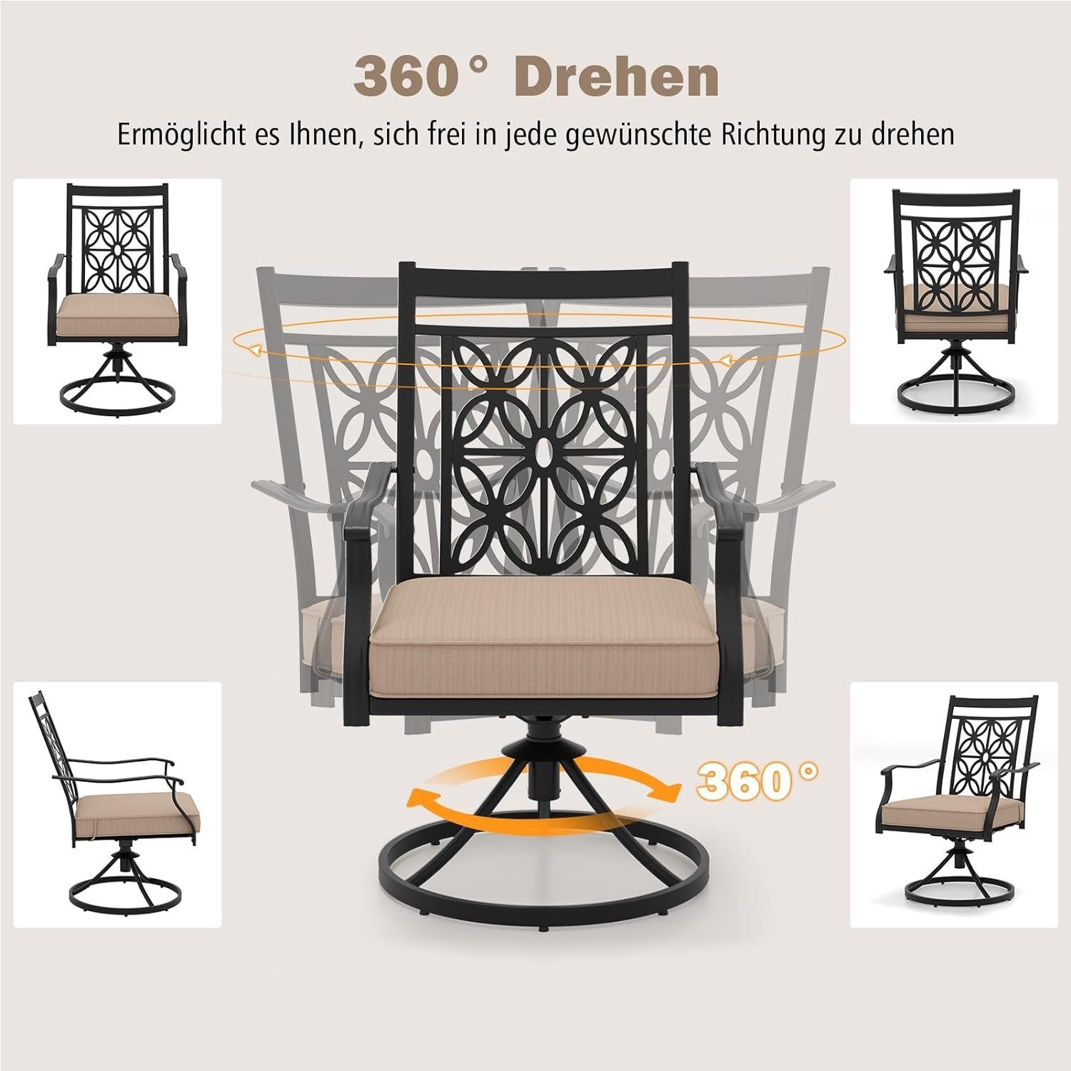 KOMFOTTEU Gartenstühle 2er Set - Drehstühle Mit Kissen Bis 150kg