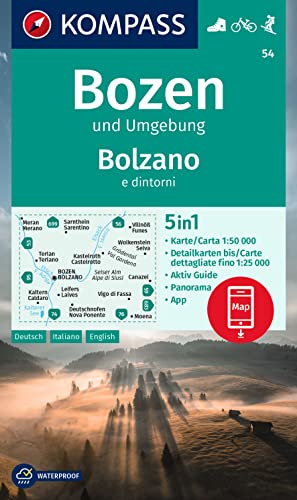 KOMPASS Wanderkarte 54 Bozen 1:50.000 - 5in1 Karte Mit Panorama