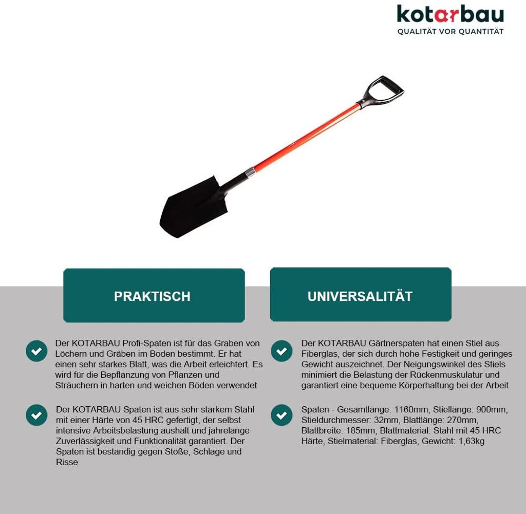 KOTARBAU Profi Gärtnerspaten 120cm - Spitzblatt Spaten Mit Stiel