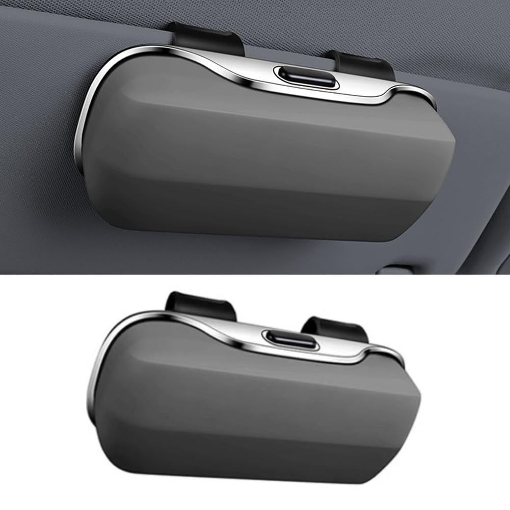 Deine Brille hat endlich einen festen Platz im Auto! Dieses praktische Brillenetui clipst du einfach an die Sonnenblende und schon ist deine Brille oder Sonnenbrille immer griffbereit. Mit weicher Filzpolsterung innen - keine Kratzer mehr! Aus robustem ABS-Kunststoff und mit sicherer Doppel-Schnallenverriegelung. Passt für Brillen bis 40mm Breite und kann auch Karten, Führerschein oder Münzen aufnehmen. Ohne Werkzeug montiert - einfach anklipsen und fertig! Das 19,5x14,5x5,6cm große Fach ist groß genug für die meisten Brillen aber klein genug um nicht zu stören. Endlich Ordnung im Auto!