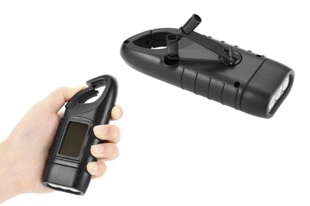 KUKUPOW Dynamo Taschenlampe Gelb - Solar Kurbel Lampe Mit Karabiner