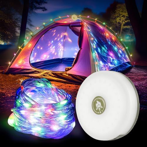 KYNAST LED Campinglampe Mit Lichterkette - Akku Lampe 10m Ausrollbar Warmweiß & Bunt