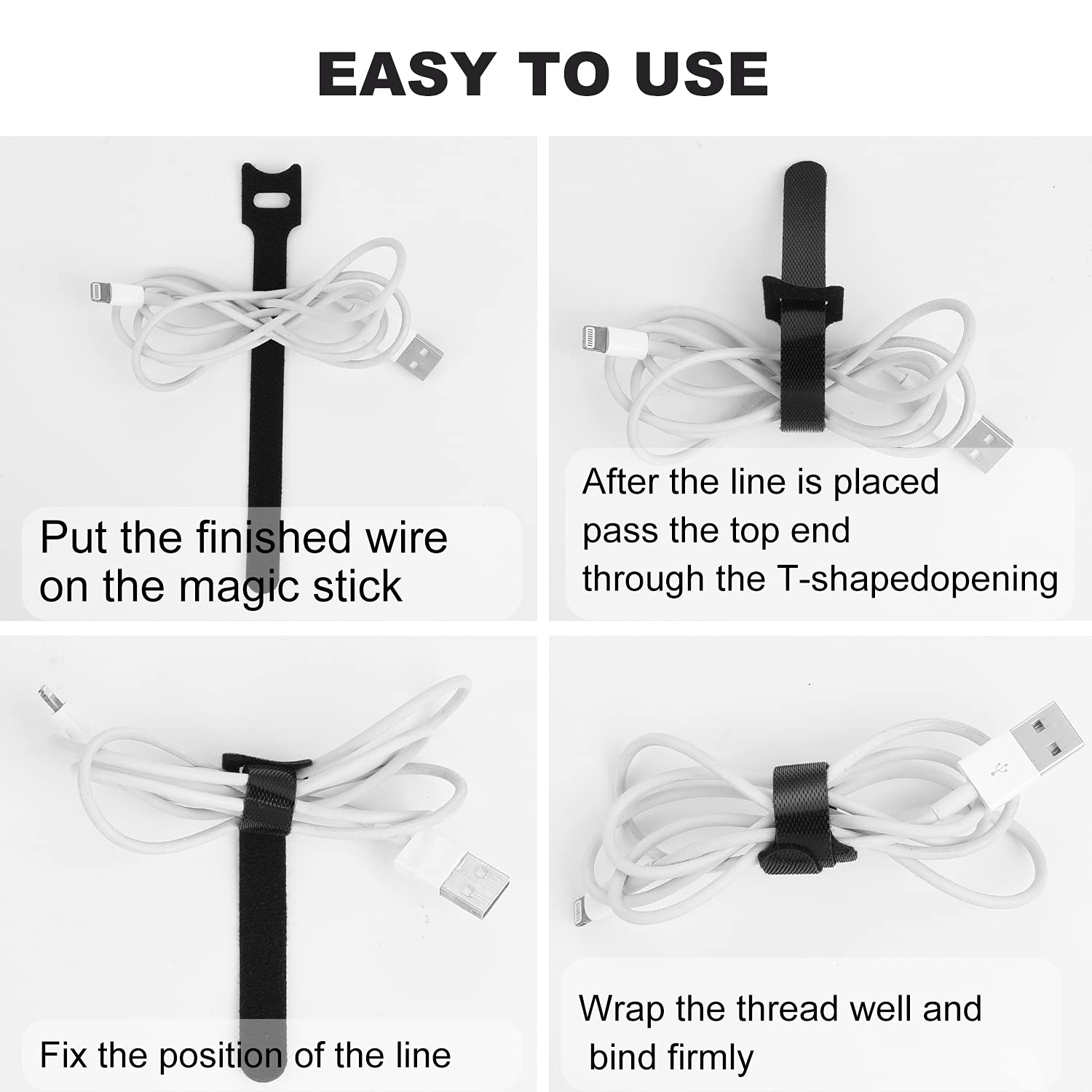 100 Kabelbinder Set - Wiederverwendbare Klettband Kabelhalter Für Schreibtisch