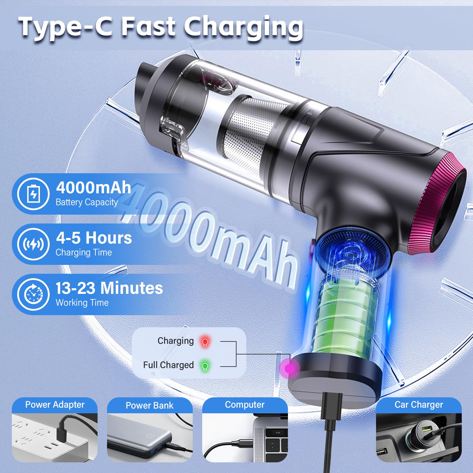 Anluomania Handstaubsauger Kabellos 6000Pa - 3in1 Akku Sauger Für Auto & Haus
