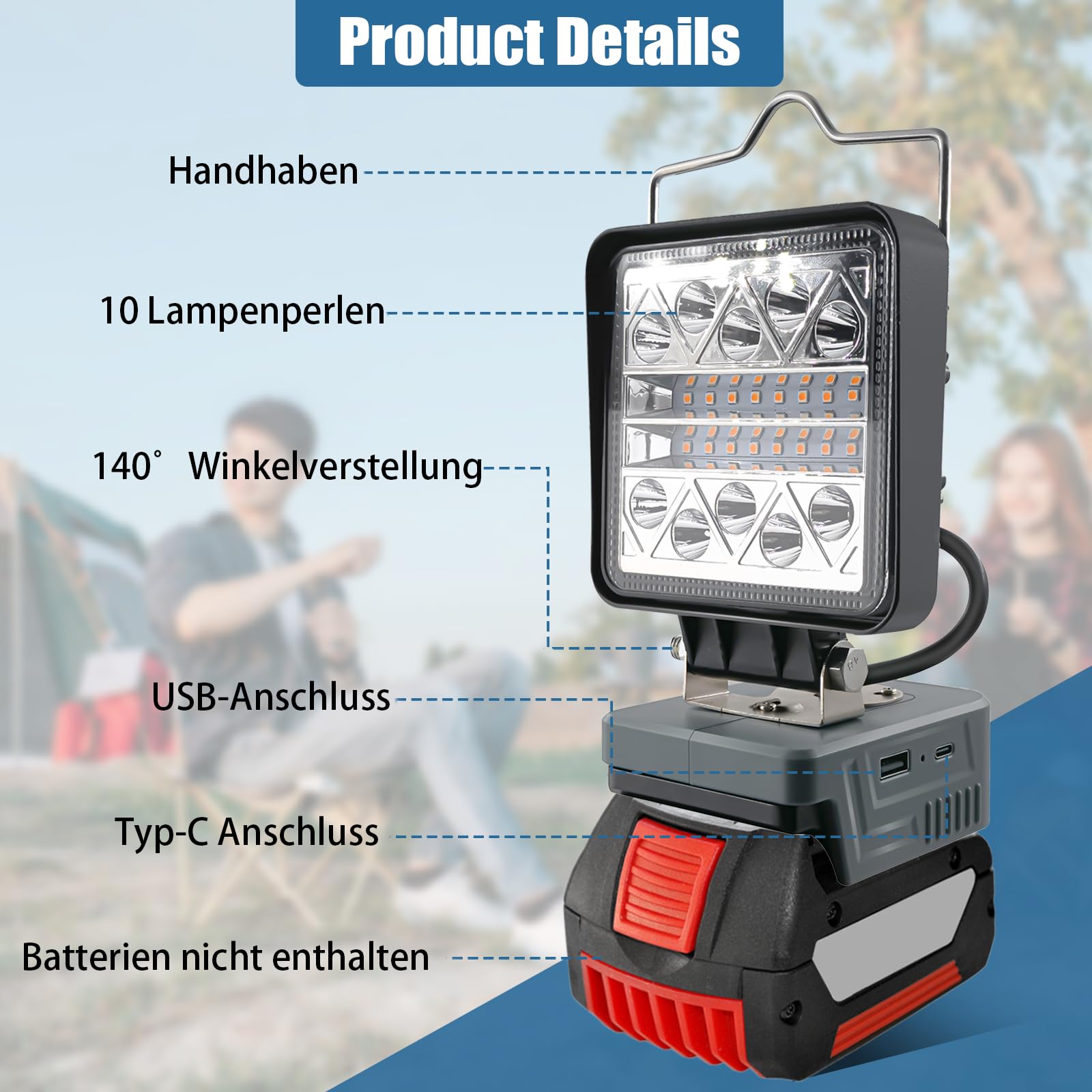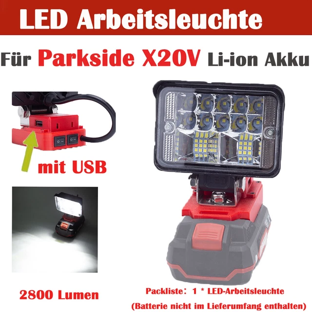 Wow, diese Arbeitsleuchte für Bosch 18V Akkus ist der Hammer! 90W Leistung, 5400 Lumen - richtig hell! 84 LED-Chips mit 120° schwenkbarem Leuchtwinkel. Wasserdichtes Gehäuse aus Aluminium - perfekt für Outdoor-Einsätze. Das Beste: Kann deine Handys etc. über USB-C und USB-A aufladen! Zwei Helligkeitsstufen: Vollpower oder Energiesparmodus. Ohne Akku - nutzt deine bestehenden Bosch 18V Akkus. Ideal für Baustelle, Camping oder Notfälle. Einfach Akku rein, anschalten und du hast Licht wo immer du willst - ohne Kabelwirrwarr!