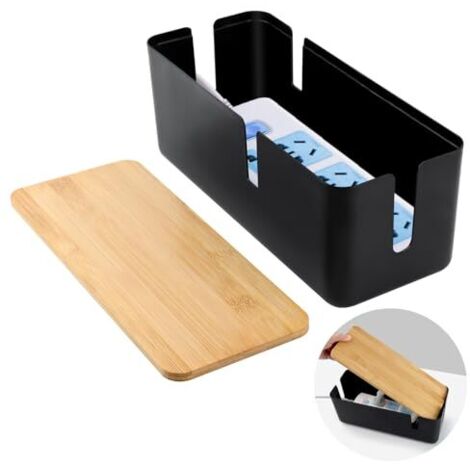 BTBHIHO Kabelmanagementbox Mit Bambusdeckel - 30x12,5x15,8cm Schwarz