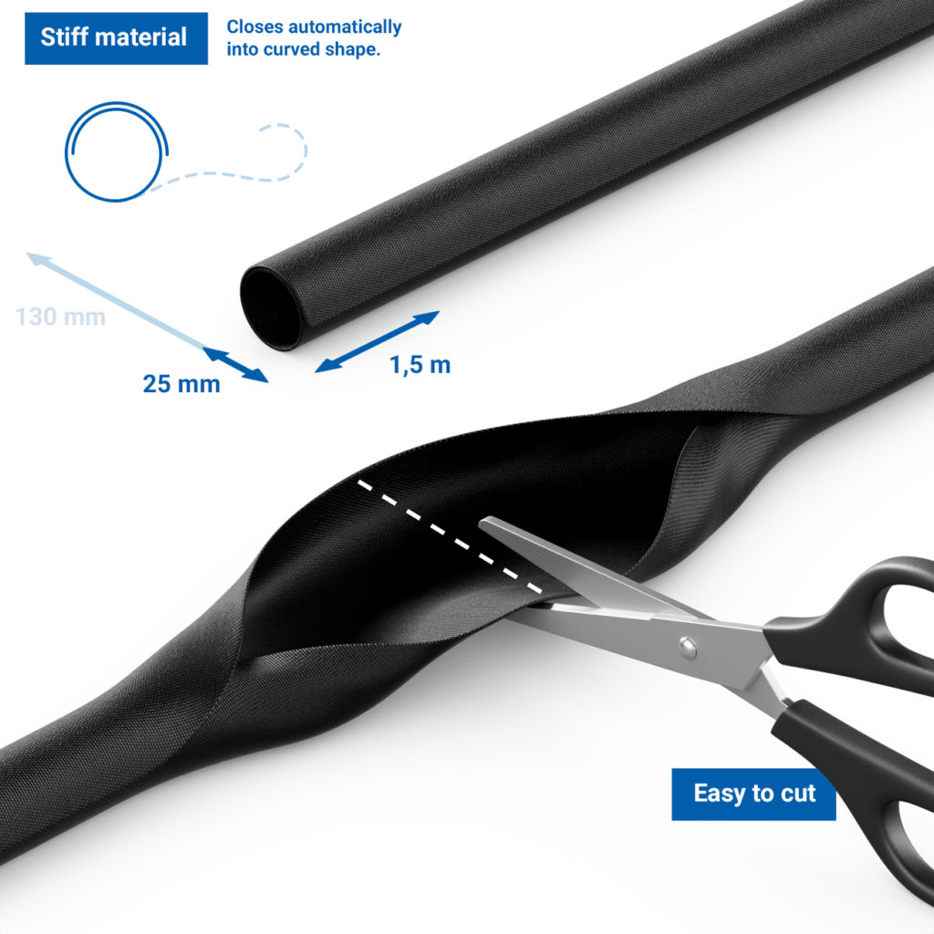 Selbstschließender Kabelkanal 3m Schwarz - Flexibler Kabelschlauch Für TV, Büro & Haushalt